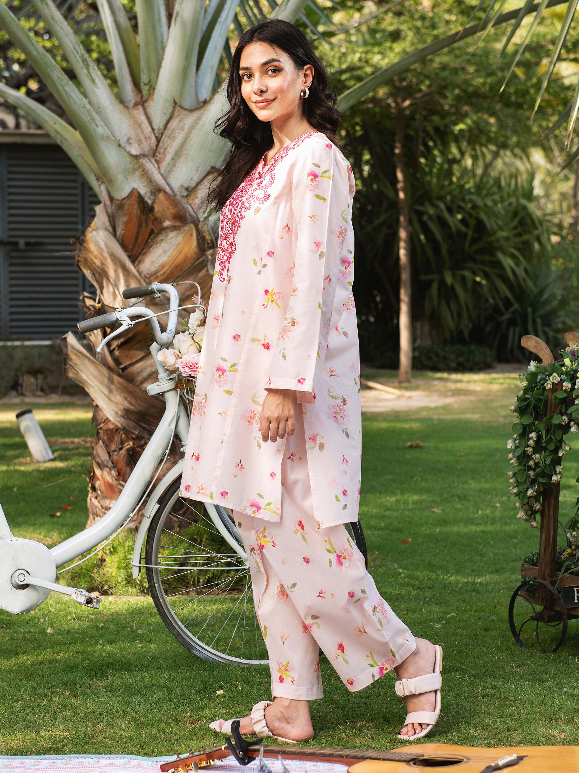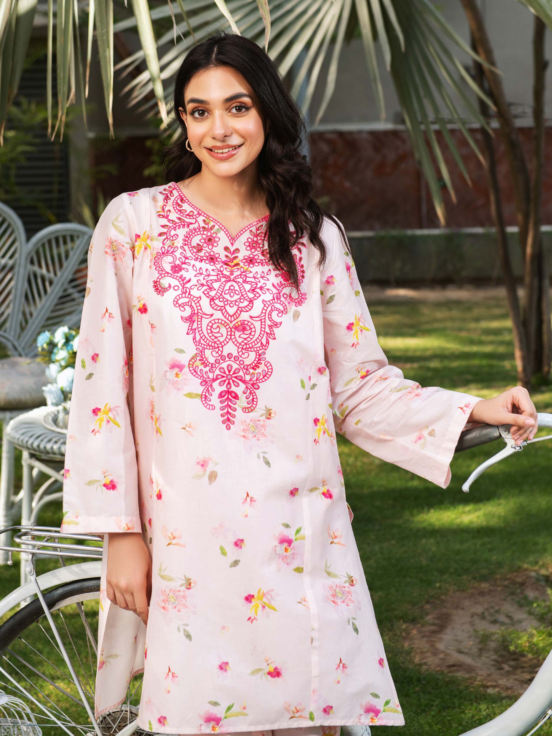 - Floral print on the trousers/shalwar