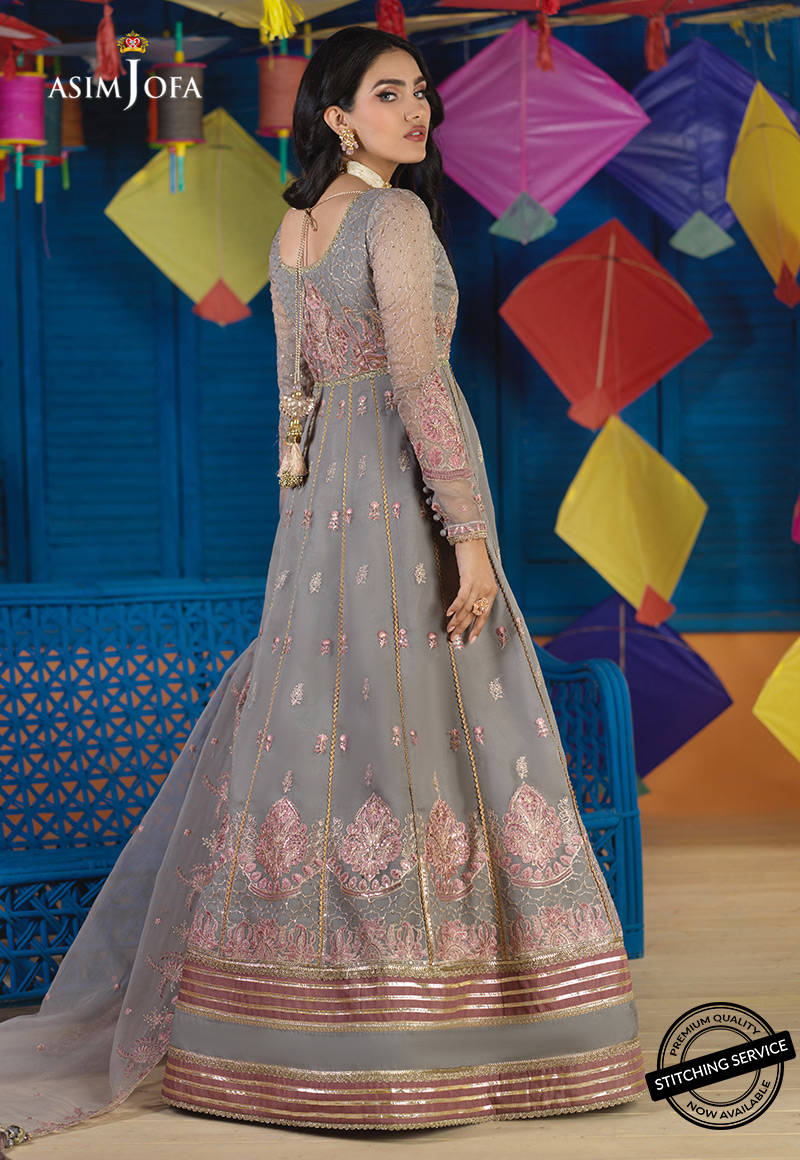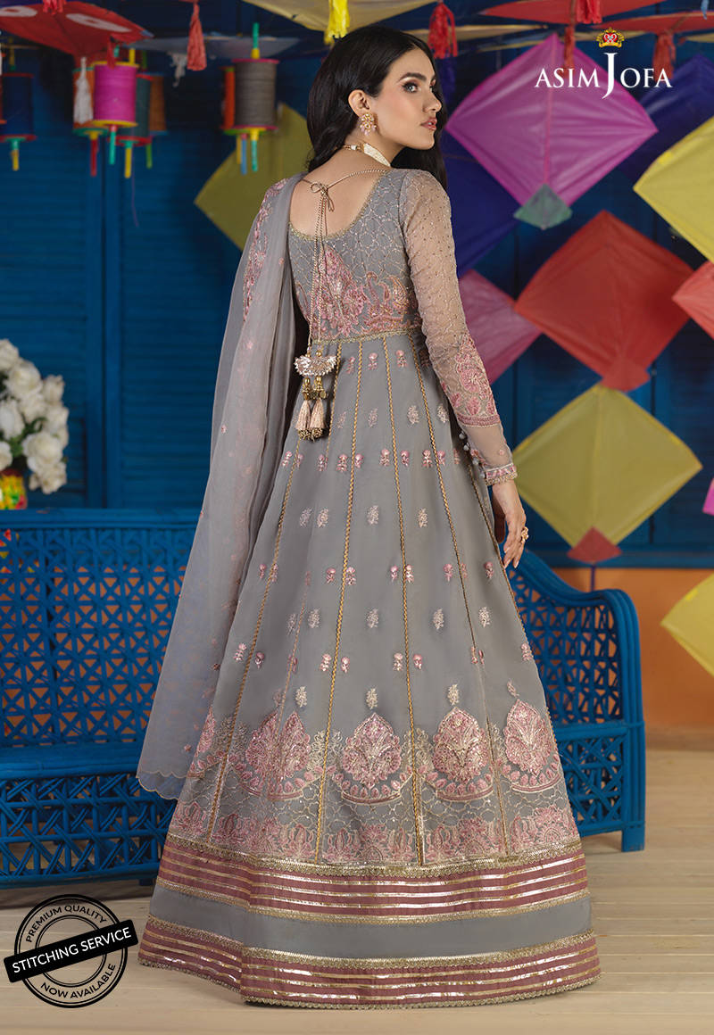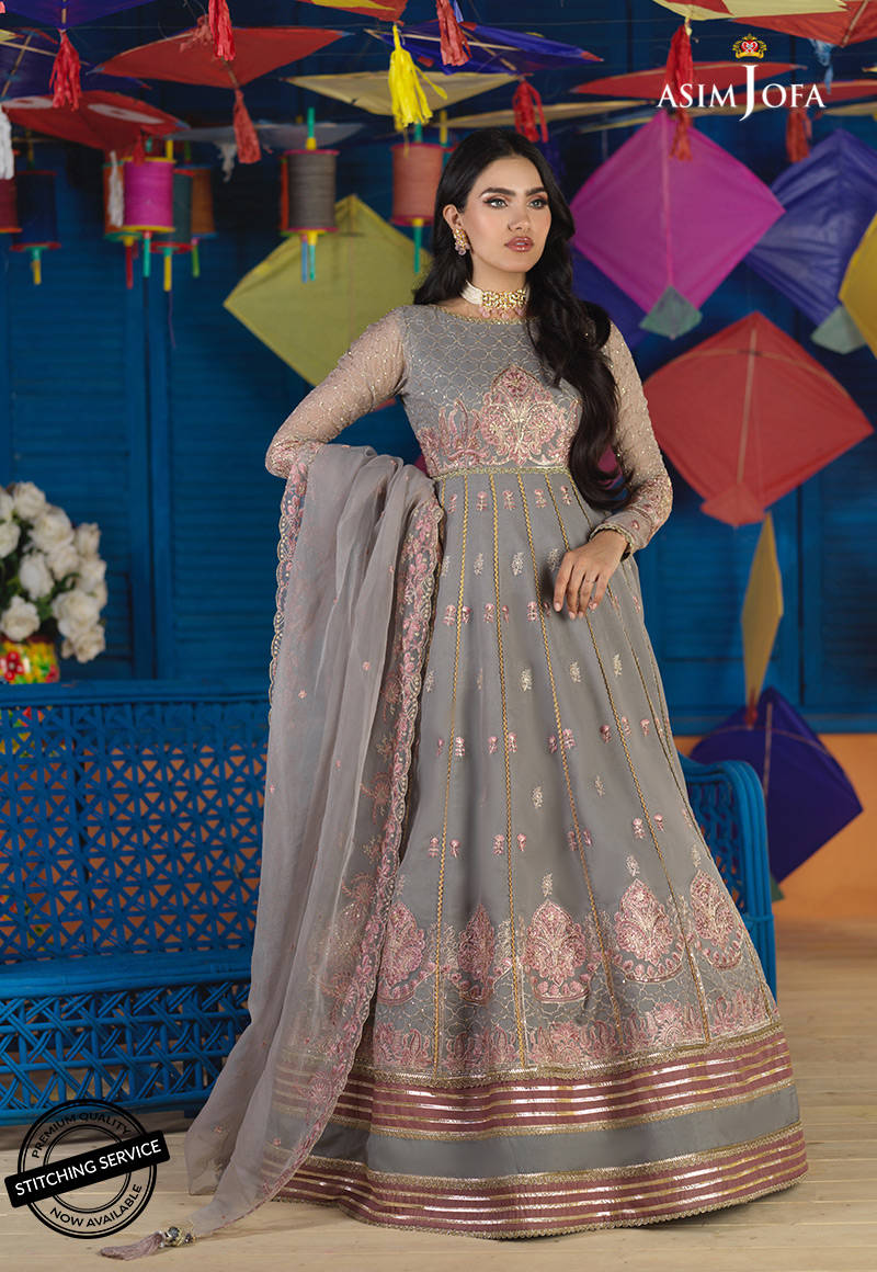 This graceful pishwas in gray is a stunning attire that has the perfect balance of elegance and royalty. This dress is beautifully embellished with an artistic embroidery of resham and tilla along with sequins spray. Floral designs and shimmering ornaments on sleeves, bodice and borders give a traditional appearance to this beautiful attire. It achieves the final look when paired with a dyed trouser and a delicate dupatta in same shade. Borders on dupatta are adorned with floral embroidery giving a final look to this gorgeous dress.