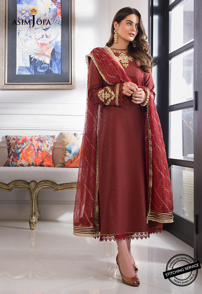 AJIM-12 Asim Jofa The Iqra & Minal Edit Winter Collection 2022 | Unstitched Embroidered Cotton Suits