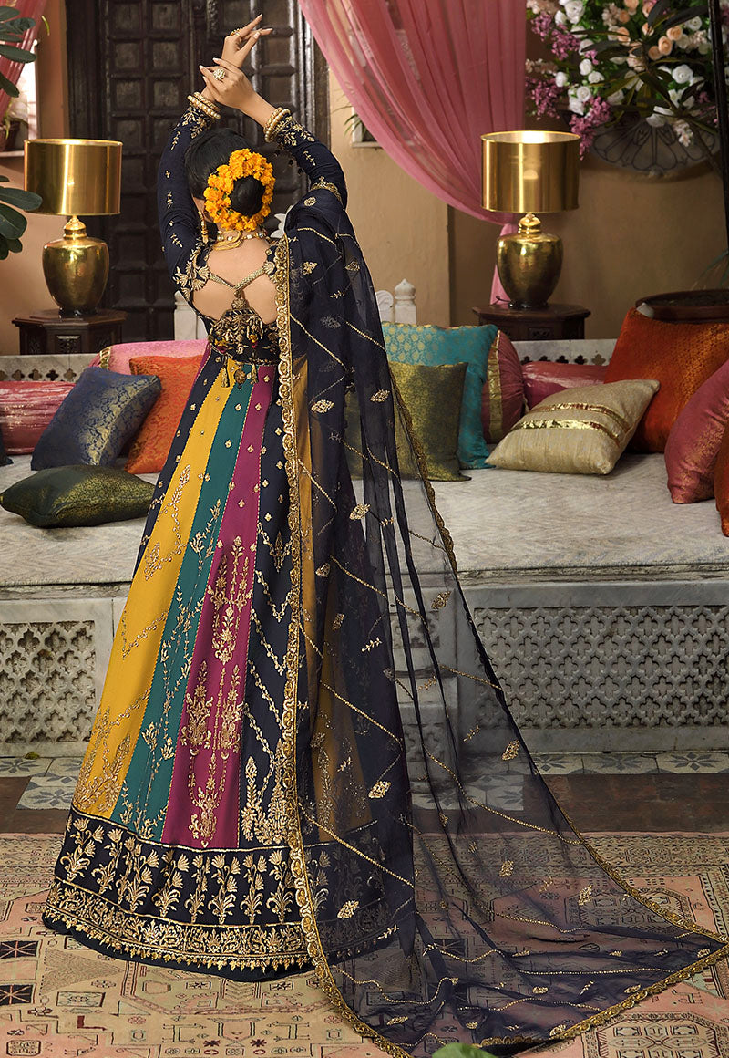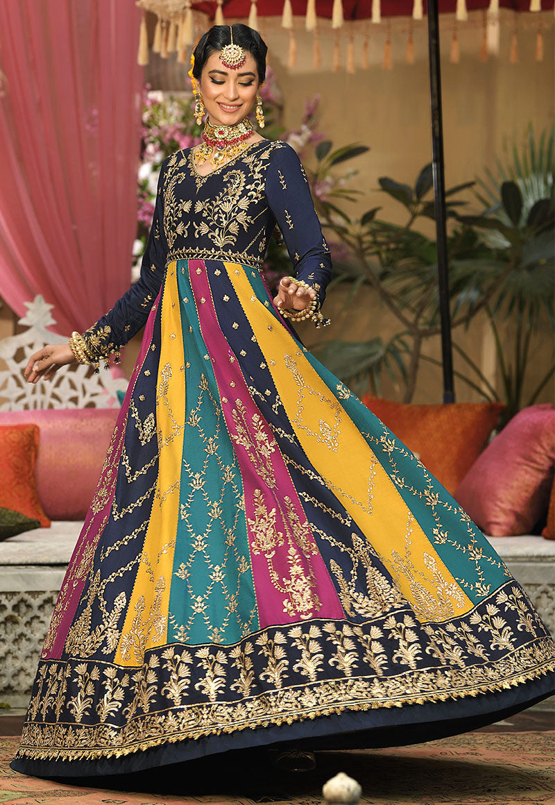 Embrace your inner royalty with this luxurious ensemble A multi-hued cotton silk Pishwas emblemed with tilla, resham and antique gold sequins comes with a delicately embellished organza dupatta for an ethereal look.