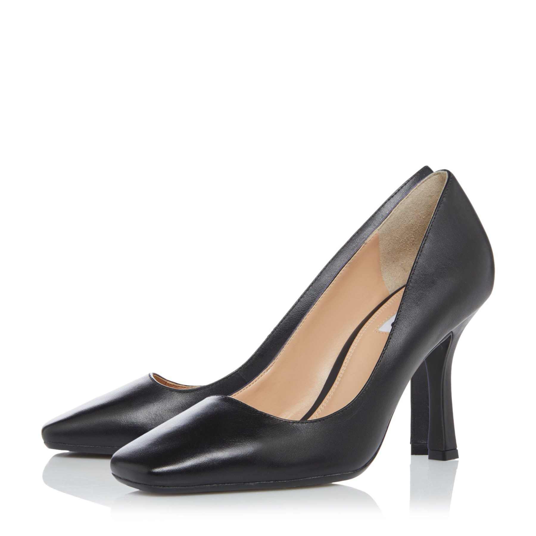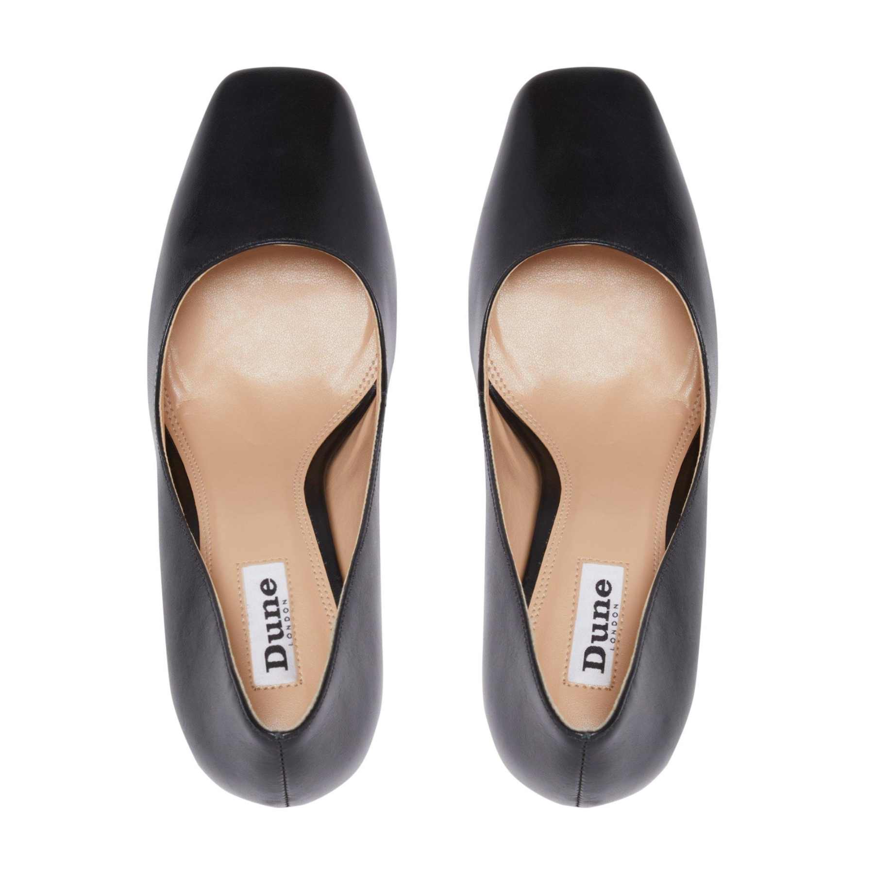 Meet Dune London's classic court with a twist. They're presented with a slender mid-heel stiletto and a square toe. Complete with a polished finish for a simple sharp look.