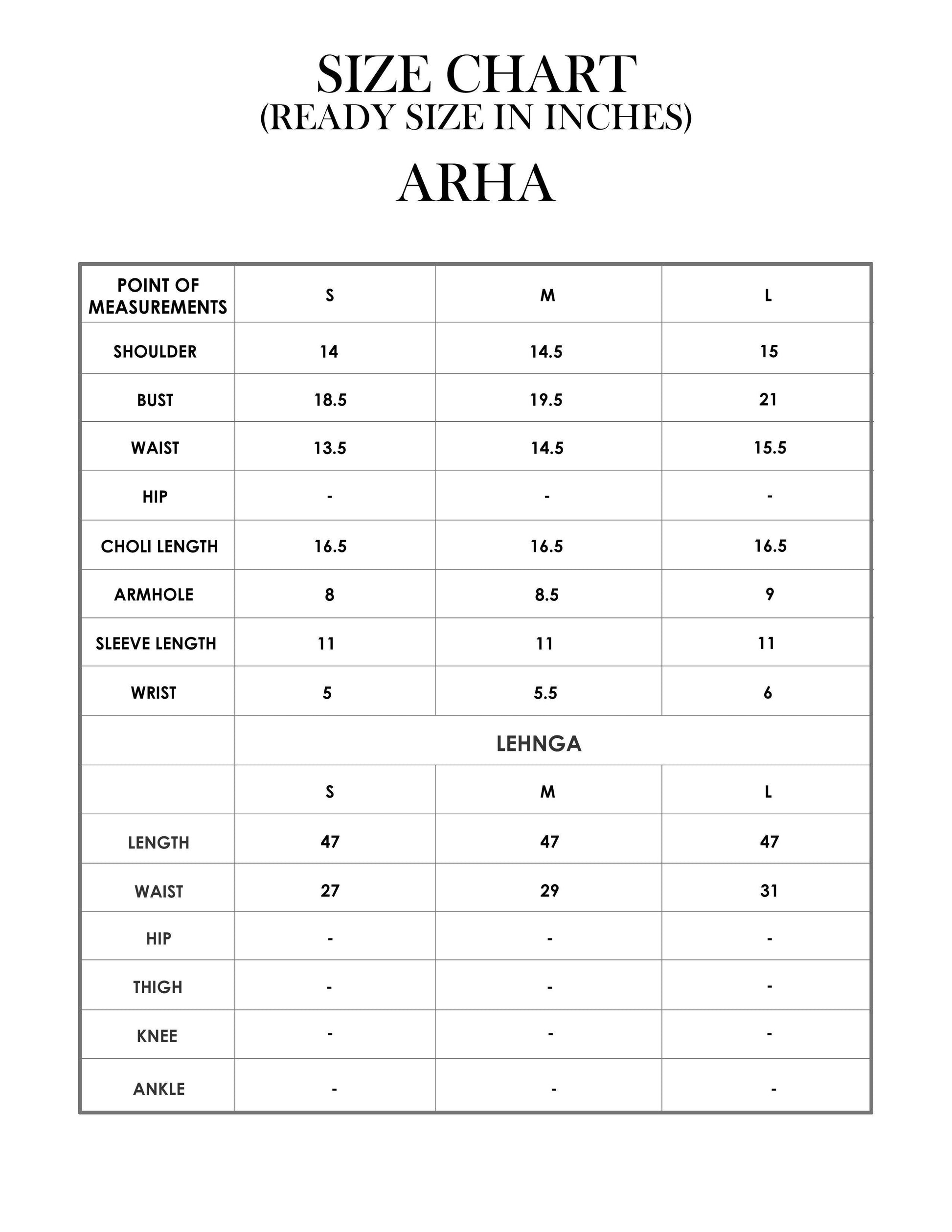 - HIGH WAISTED TULLE LEHENGA WITH MACHINE EMBROIDERY, EMBELLISHED WITH CRYSTALS, PEARLS, GOTTA AND SEQUINS