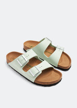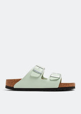 The iconic Arizona sandal from Birkenstock is the two-strap design complemented with the signature comfort of the moulded footbed which is made from anatomically formed cork with latex. The upper is crafted from a soft synthetic upper while the footbed lining is suede and the sole is EVA.