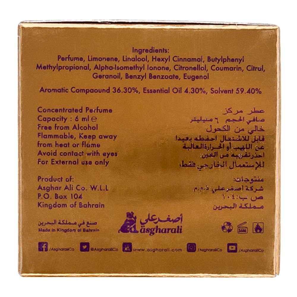 Asgharali Estabraq Bakhakh Eau De Parfum is a modern fragrance for men and women. There is a dynamic blend of amber, fougere and spicy aromas that gives it its powerful yet gentle warm feel. Its top note is a pure essence of pepper, cinnamon bark along with a bright scent of bergamot. The middle note seems to be a mix of geranium and cedarwood. The exciting scent reaches its final note with warmer and deeper aromas of wood. Estabraq Bakhakh is a signature scent for individuals looking to make a powerful impression.
