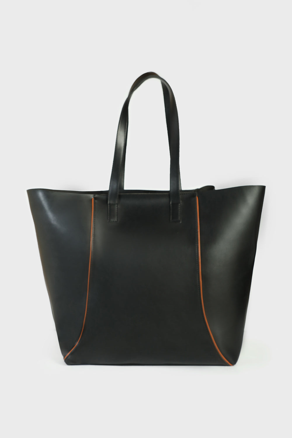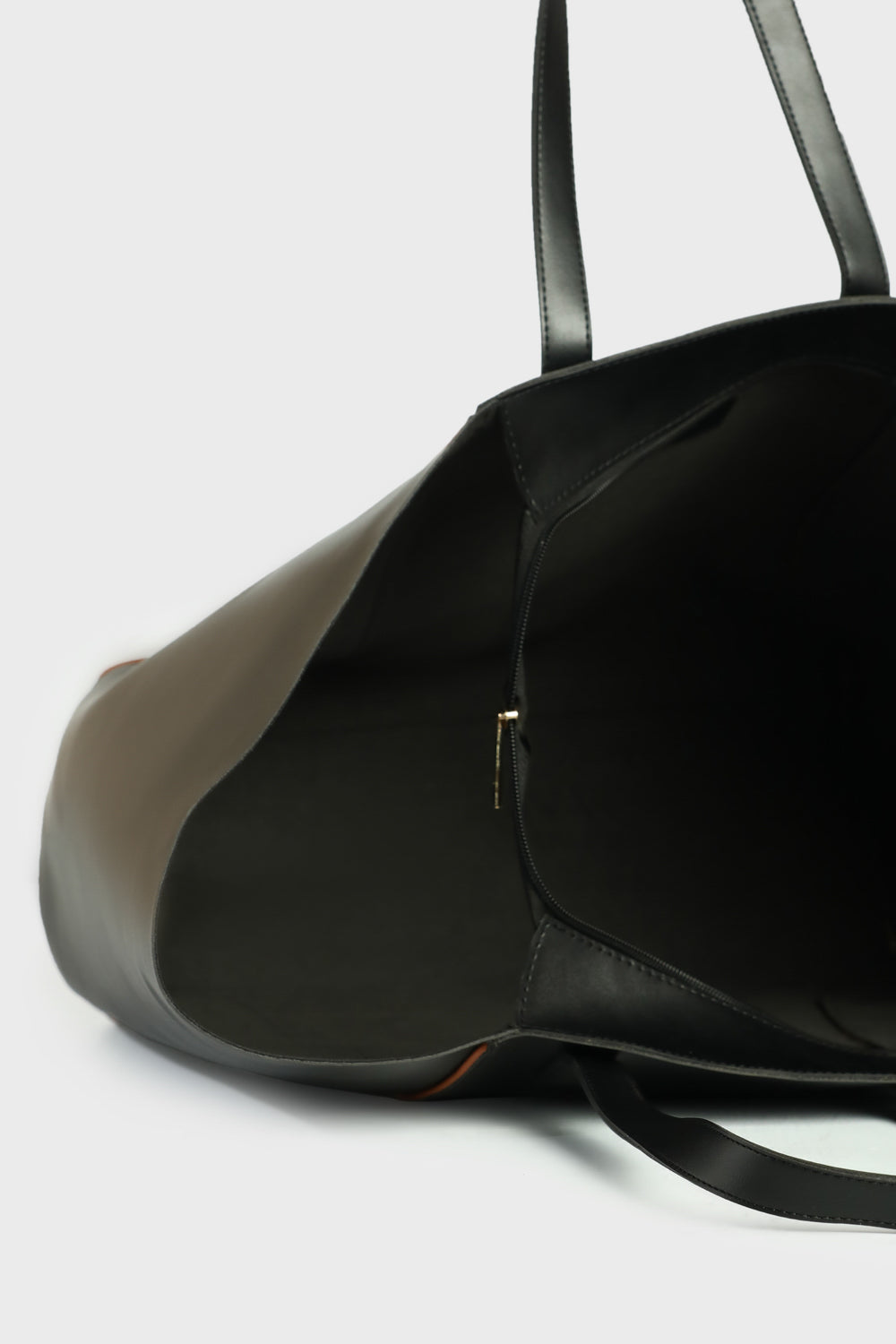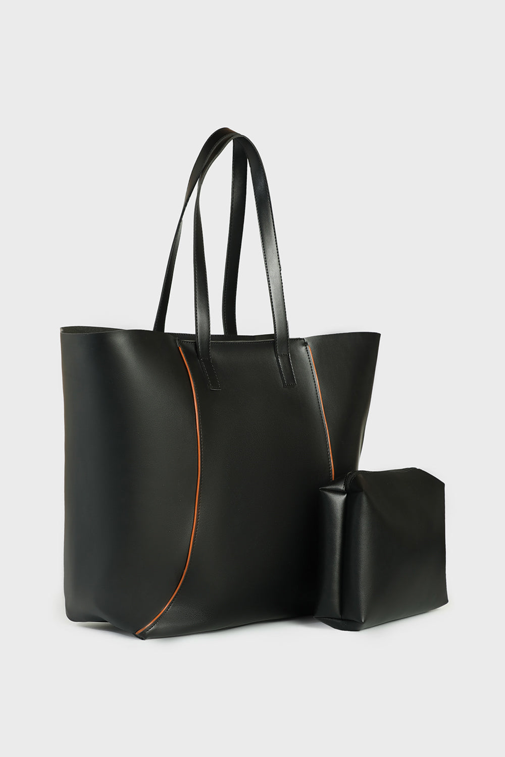 For an everyday elevated look, adorn this black PU tote with top handle.