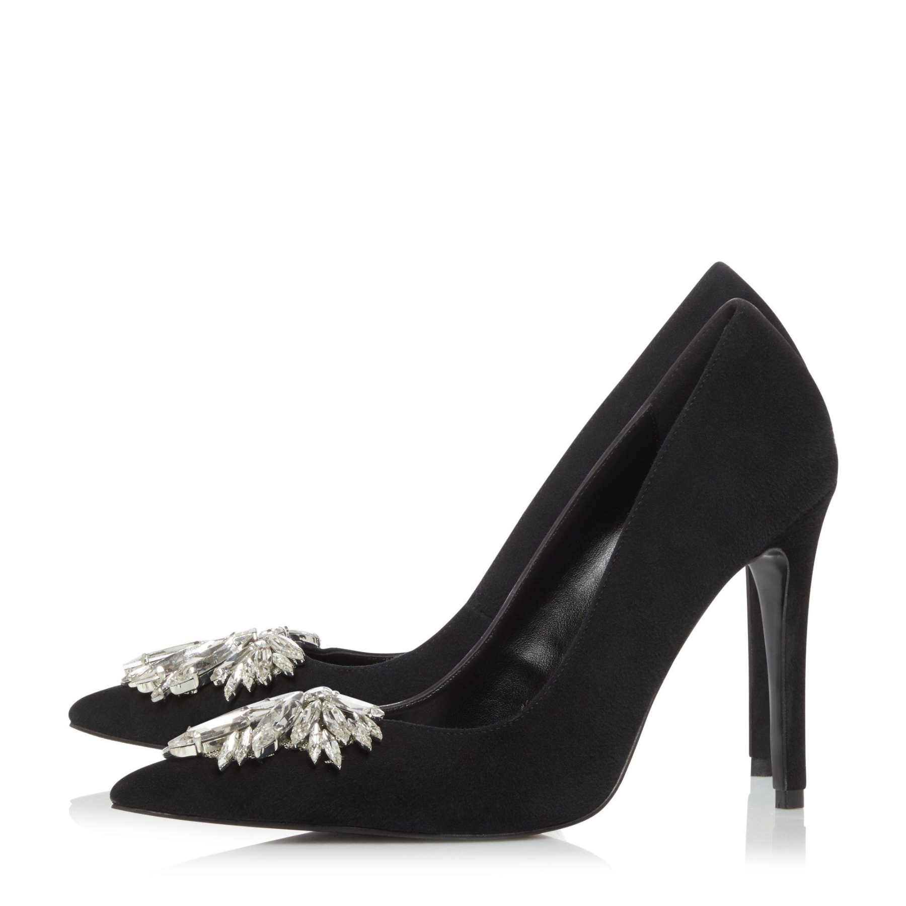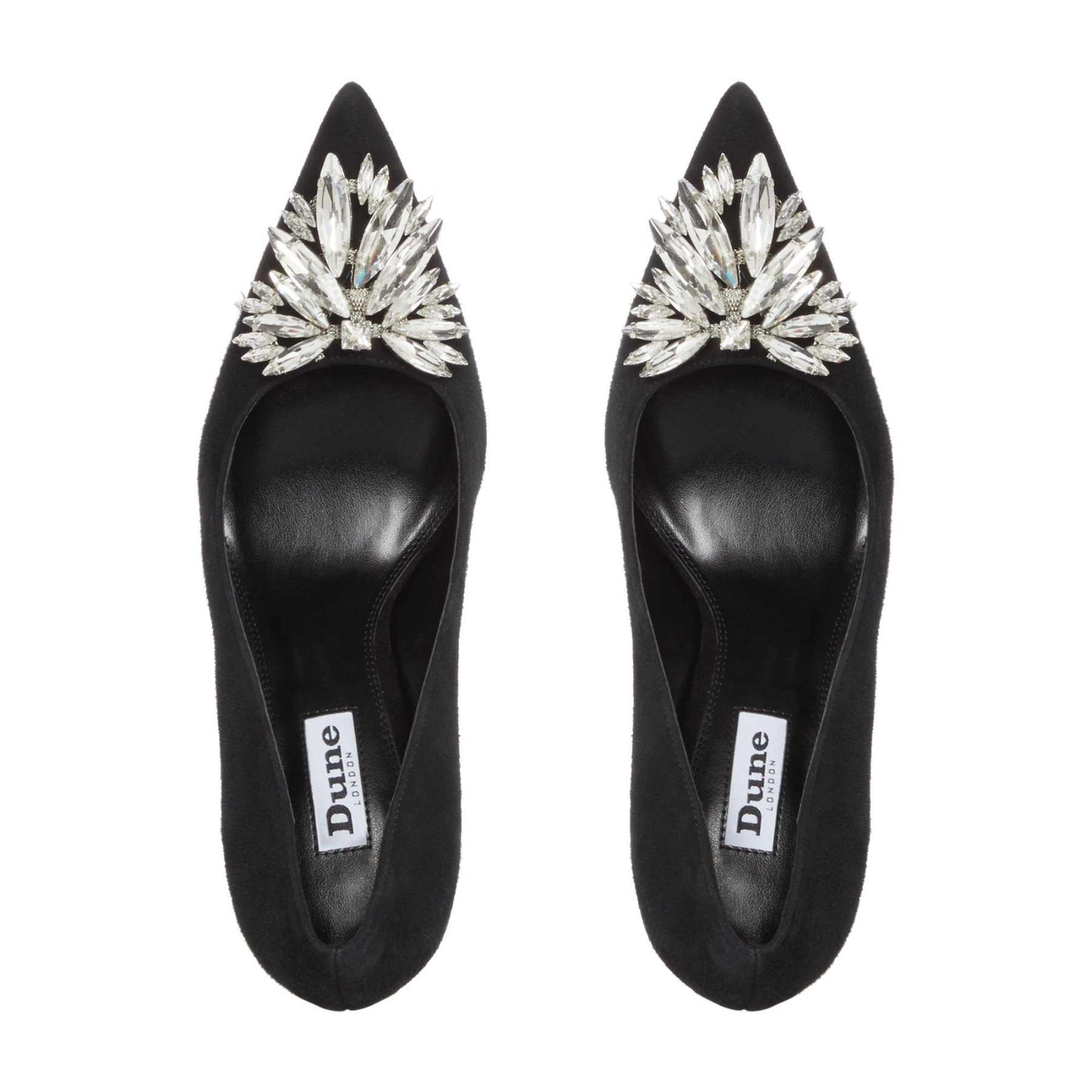 Classic courts from Dune London to add sparkle to your evening look. Showcasing a simple and sophisticated style. Adorned with a sparkly jewel detail to add glamour to your night out.