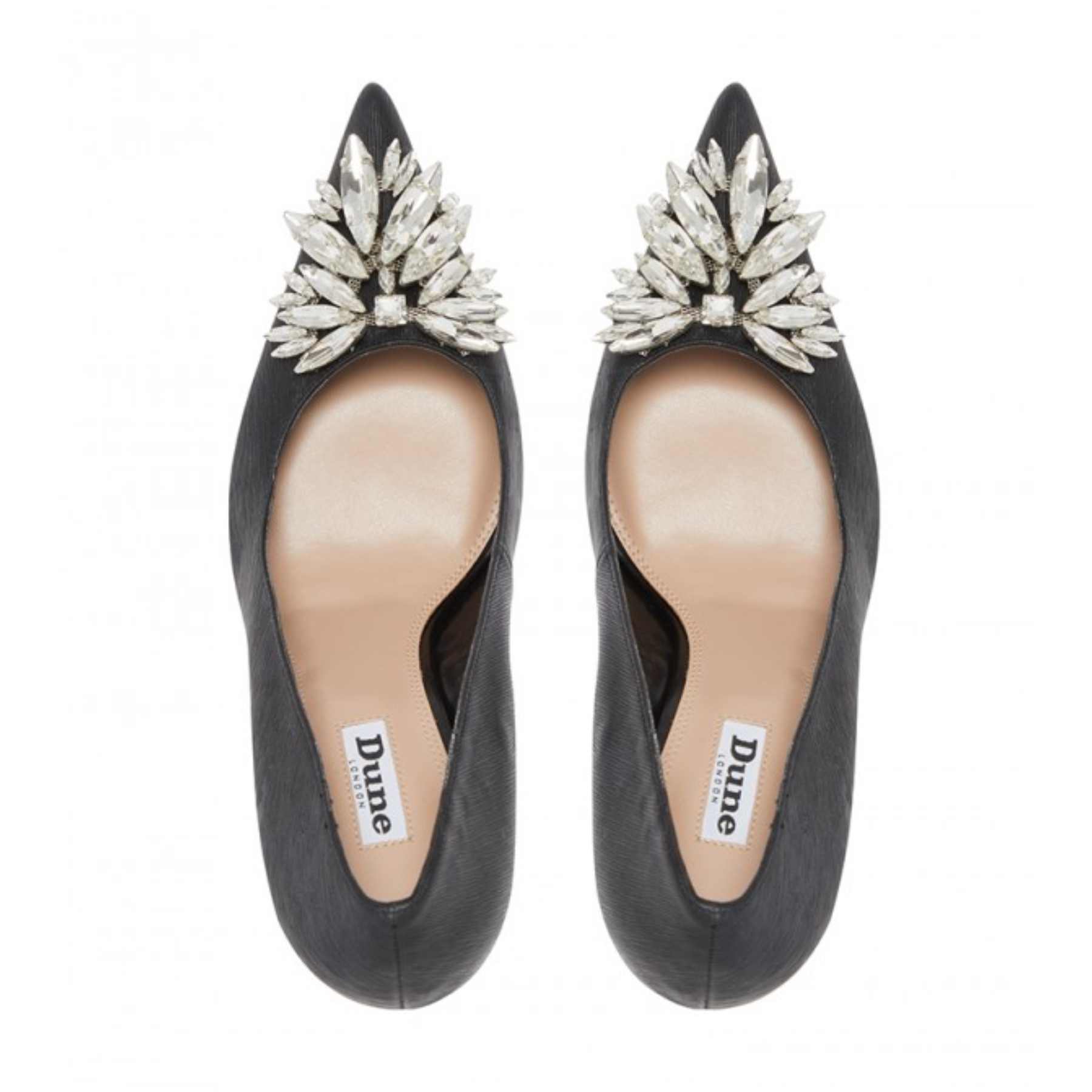 Classic courts from Dune London to add sparkle to your evening look. Showcasing a simple and sophisticated style. Adorned with a sparkly jewel detail to add glamour to your night out.