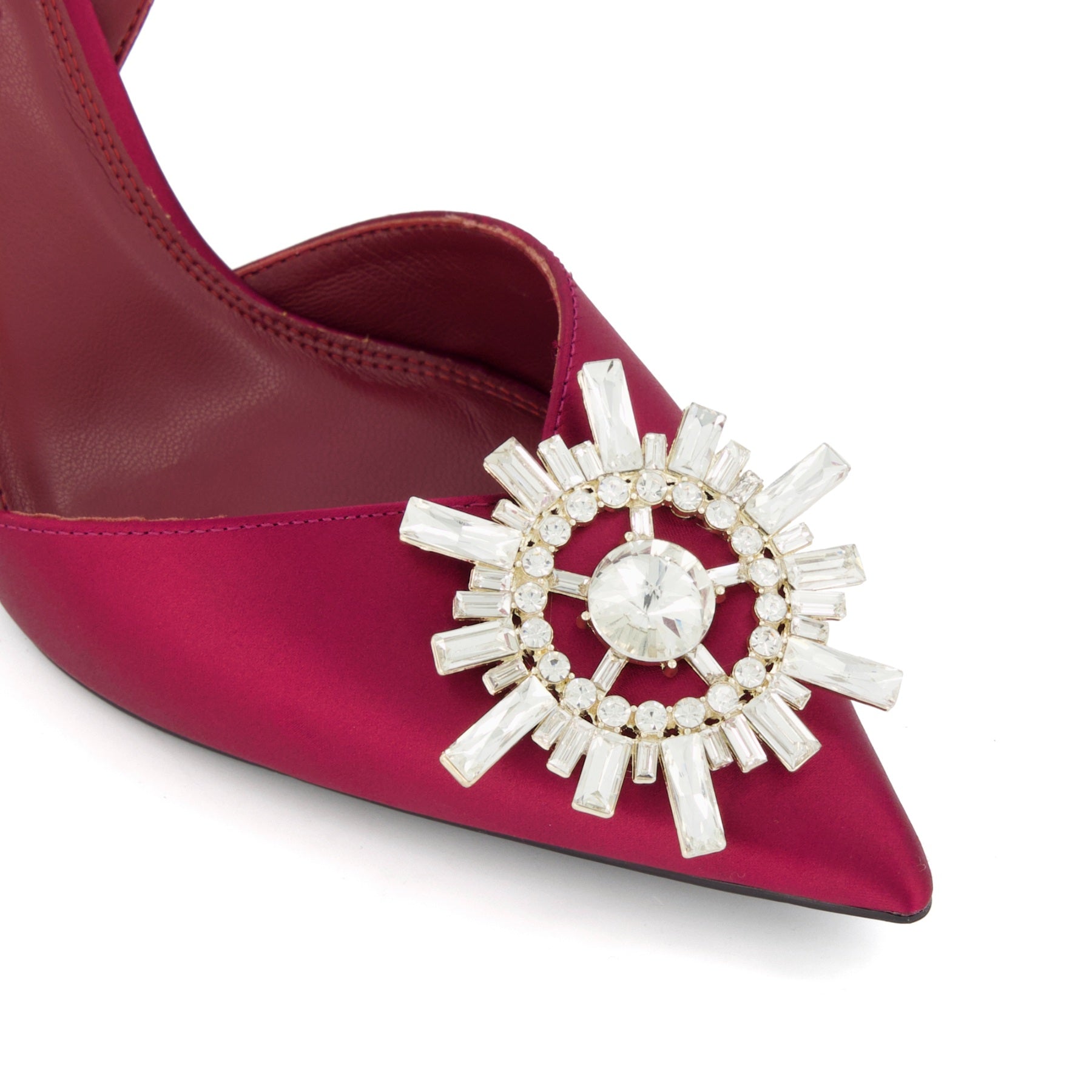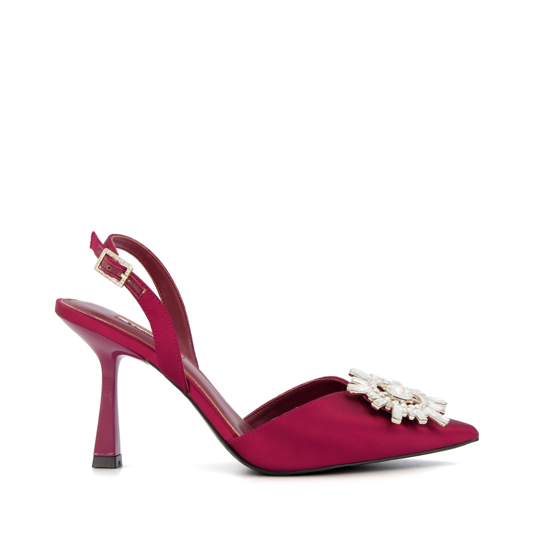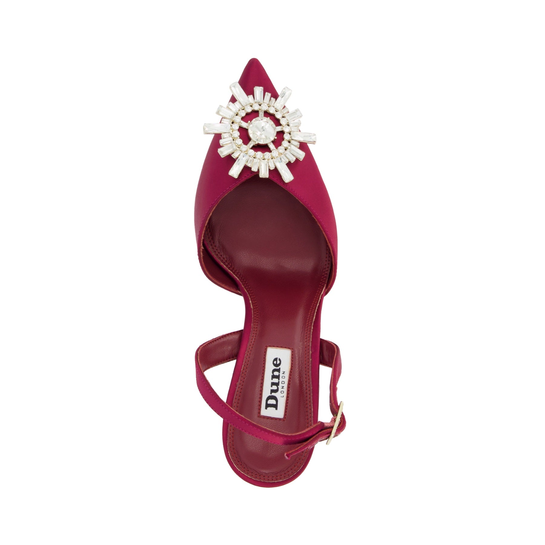 Introduce elegance to your look with this slingback heel from Dune London. This feminine style features a classic buckle fastening. It's adorned with a sparkling stone brooch and perfect for occasions.