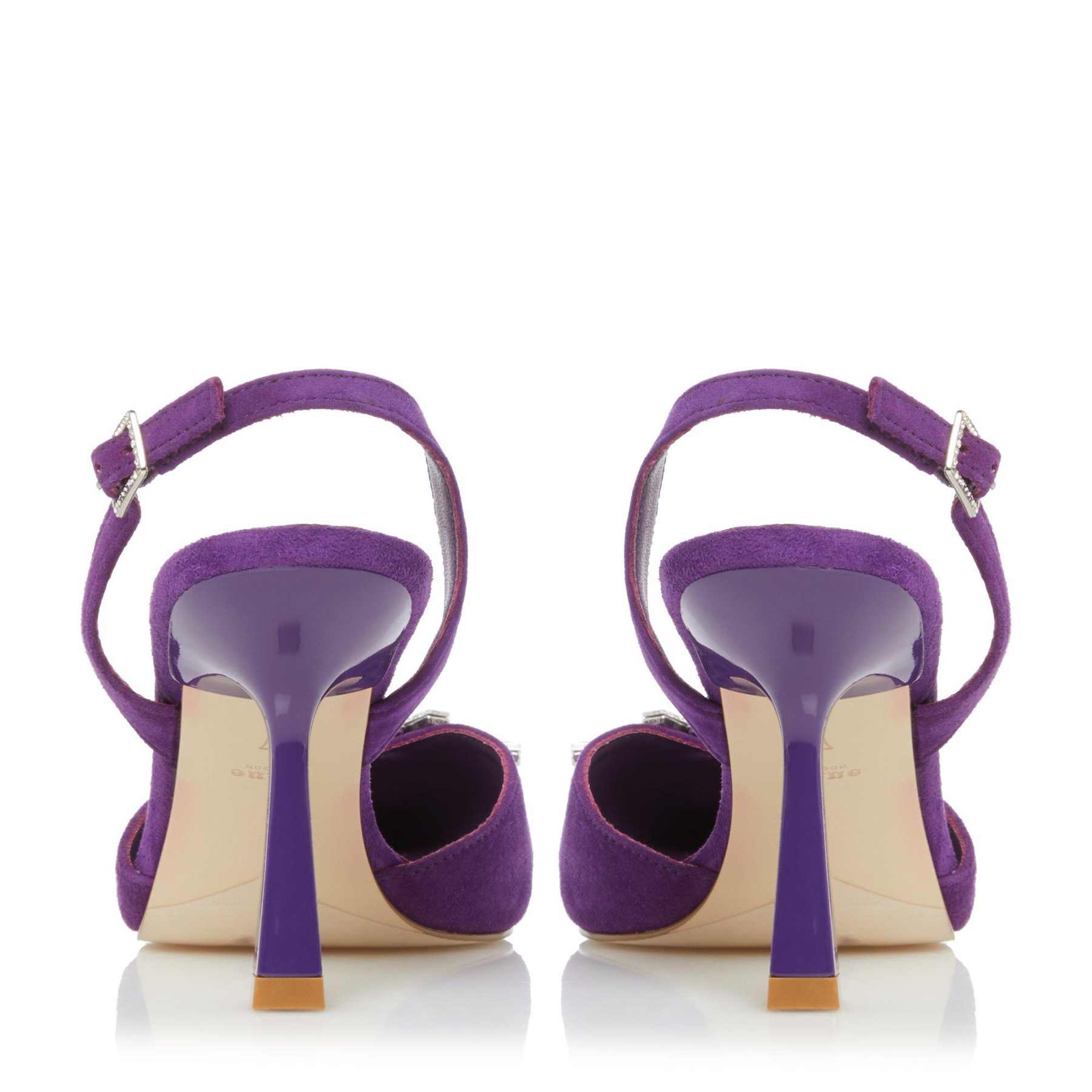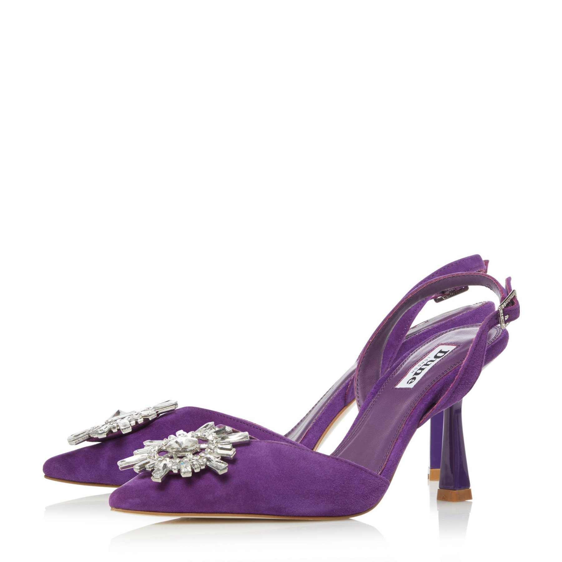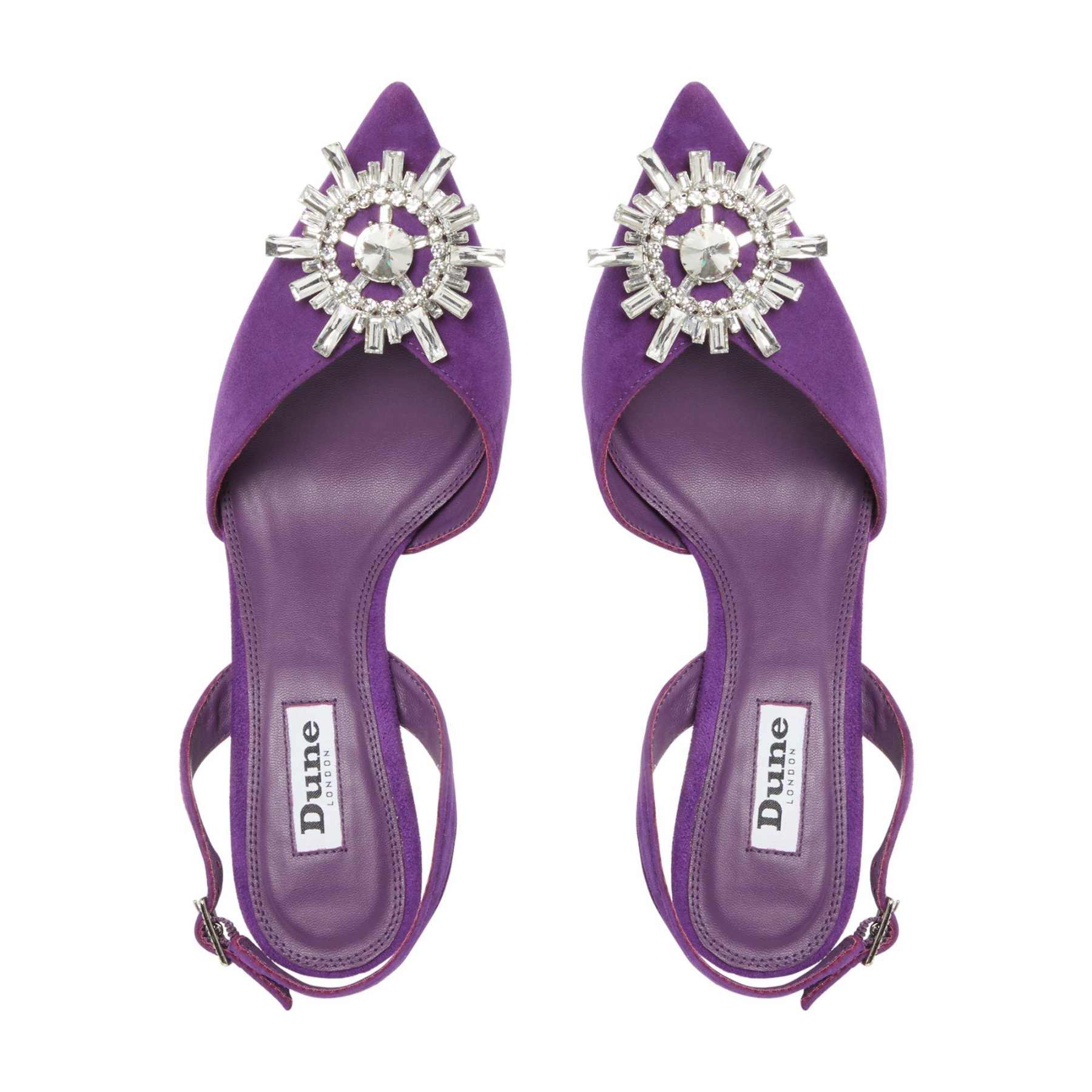 Introduce elegance to your look with this slingback heel from Dune London. This feminine style features a classic buckle fastening. It's adorned with a sparkling stone brooch and perfect for occasions.