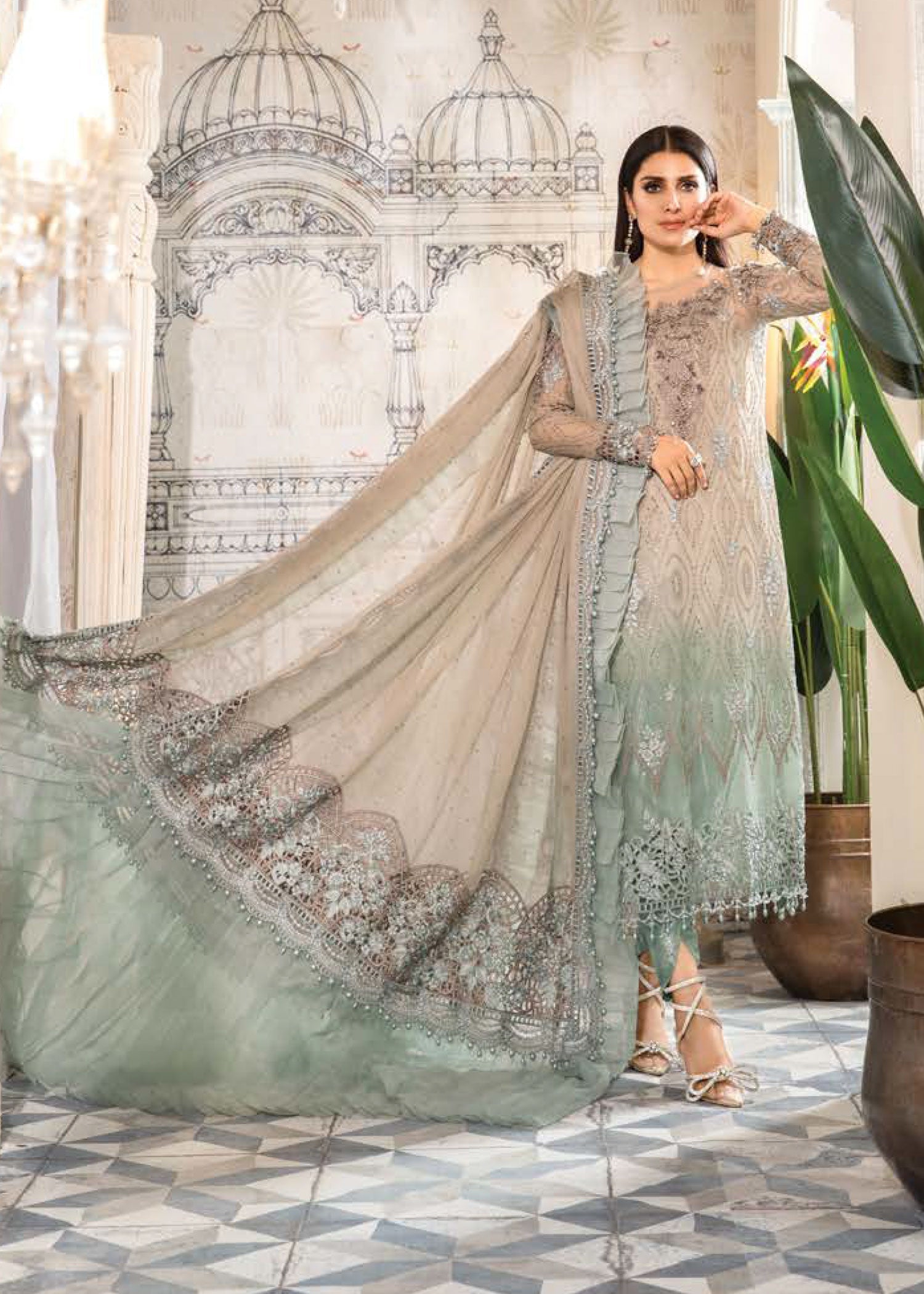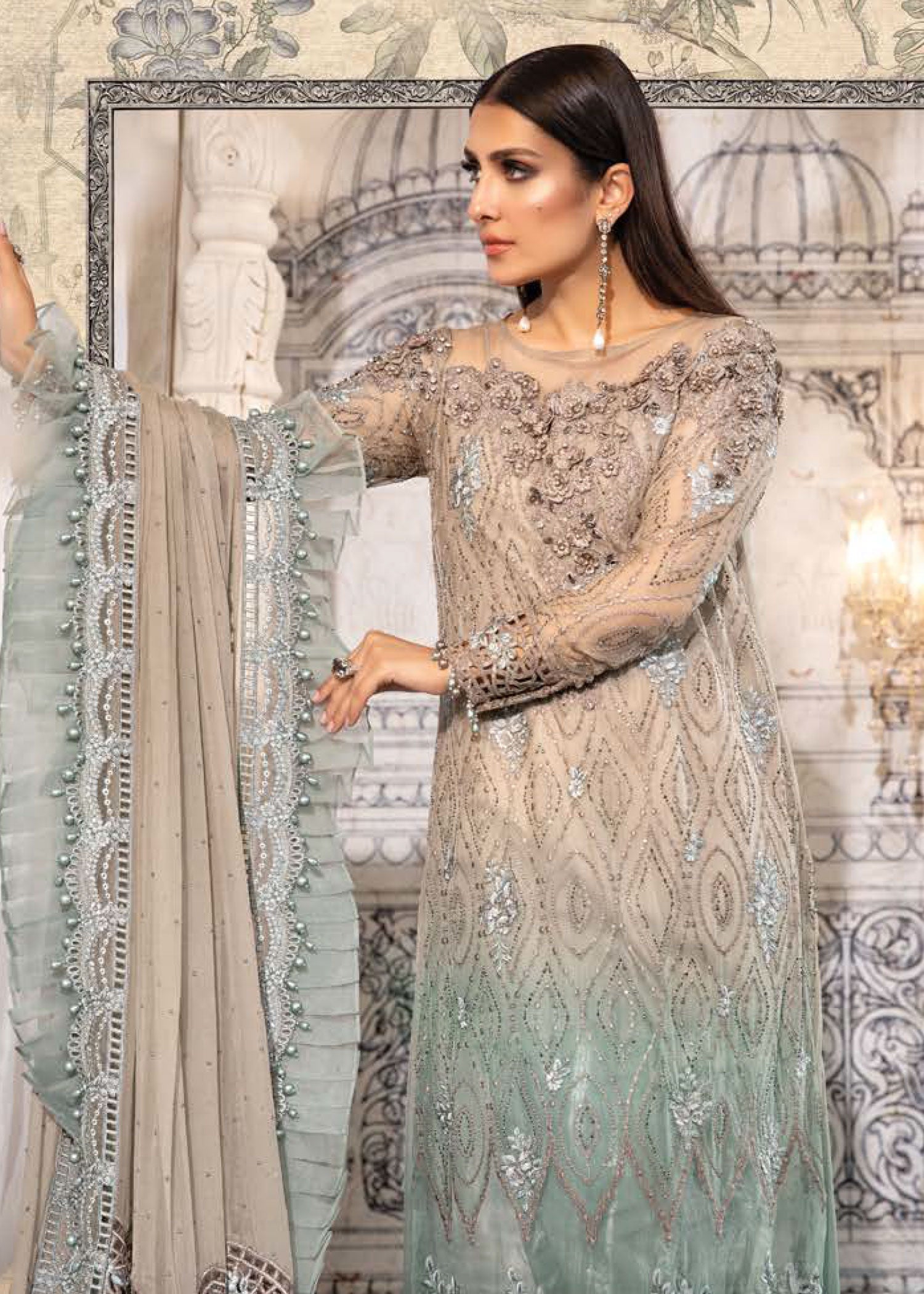 Coffee and Smoked Blue (BD-2405) | Maria B Mbroidered Heritage Edition 2022 | Unstitched Embroidered Chiffon Suits