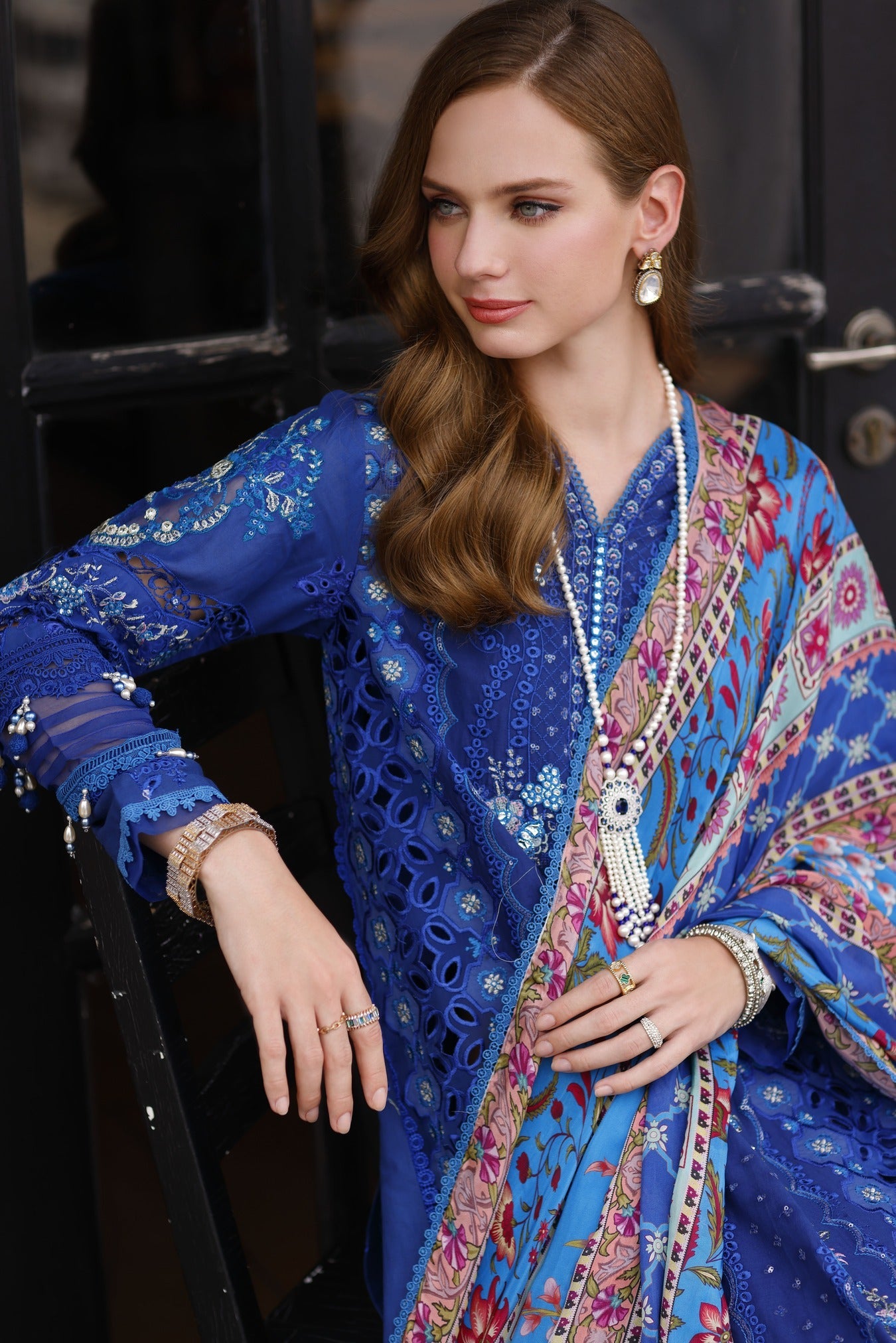 b)Schiffli Embroidered Lawn Side Panels & Back