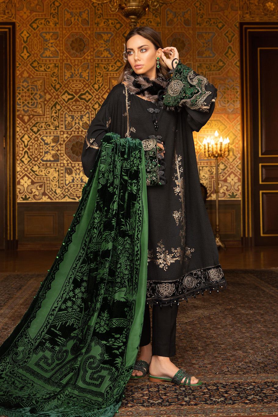 DL-907-Black and Emerald Green | Maria B Winter Linen Unstitched Collection 2021 | Unstitched Embroidered Linen Suits