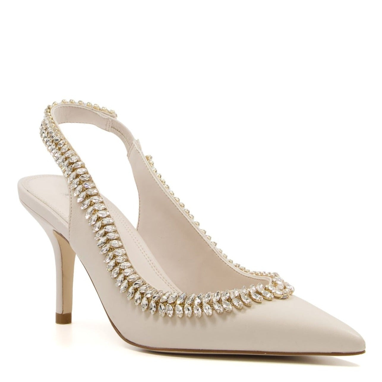 Ready to shop necklace trim sling sandals?? Shop now these beautiful pair of sandals with slingbacks for the occasion on any outfit.