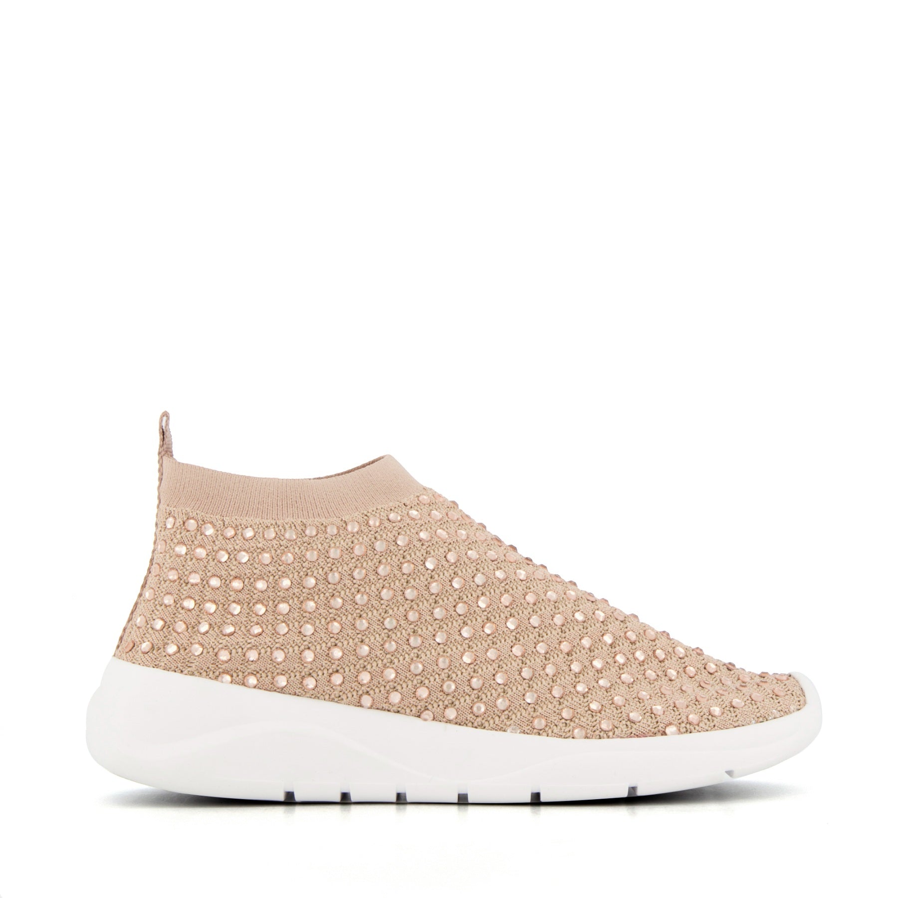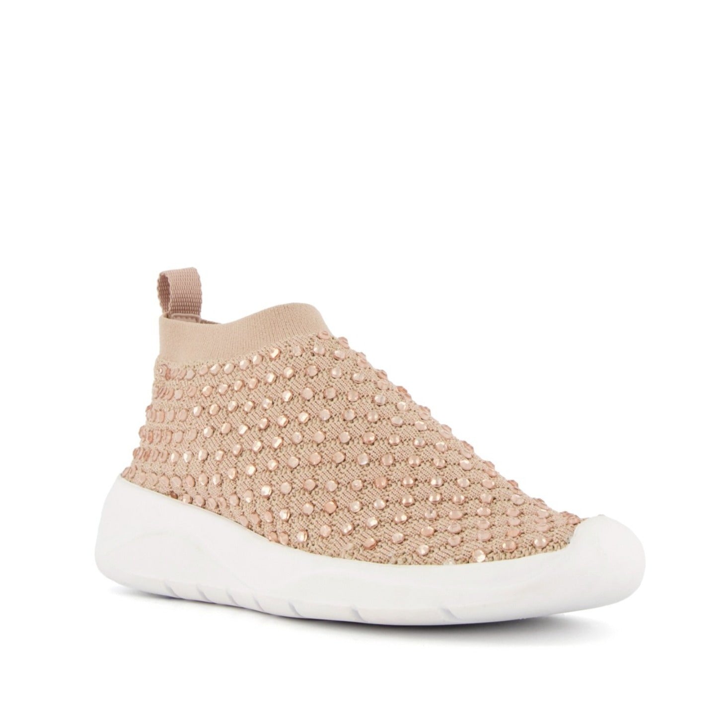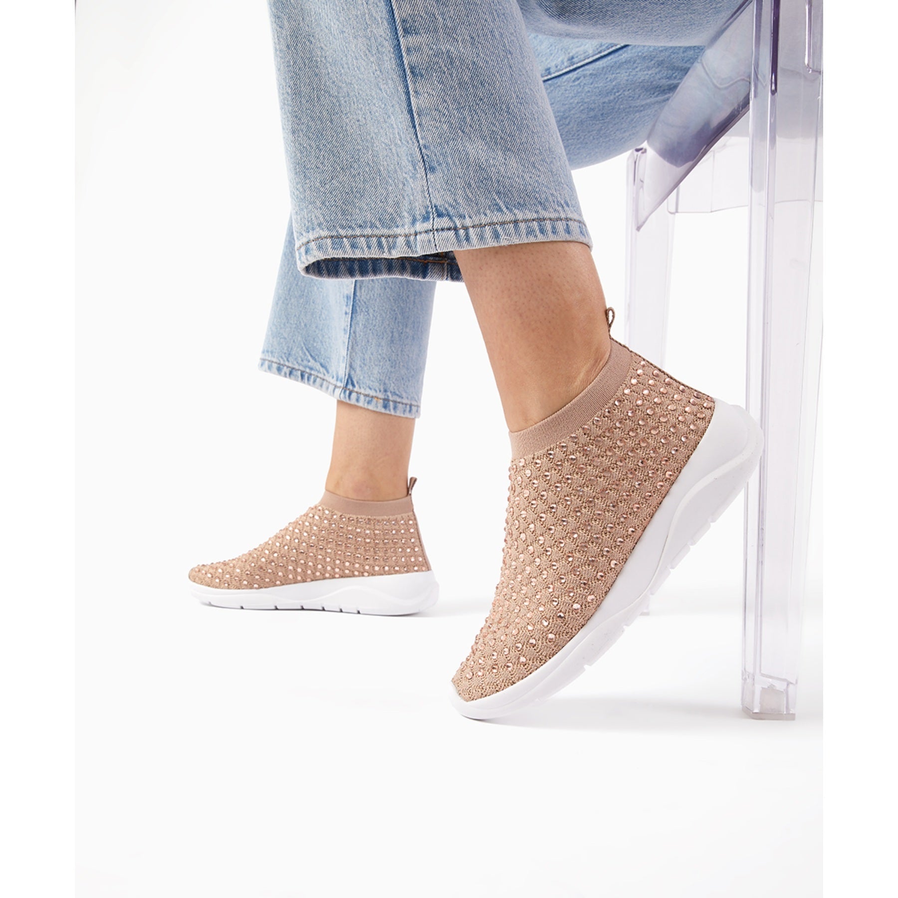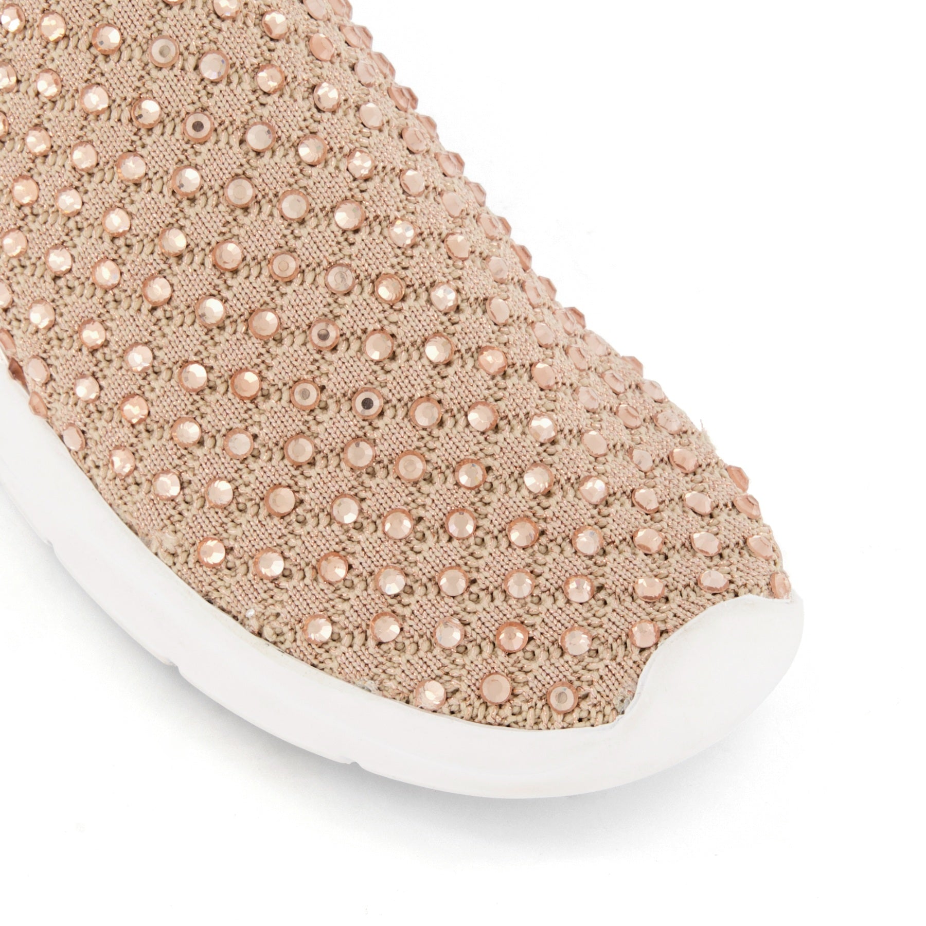 These hand embellished trainers will add opulence to your everyday. We love how the crystals contrast the sporty sock-knit of these sneakers. They showcase a chunky sporty sole for ultimate flexibility and comfort.