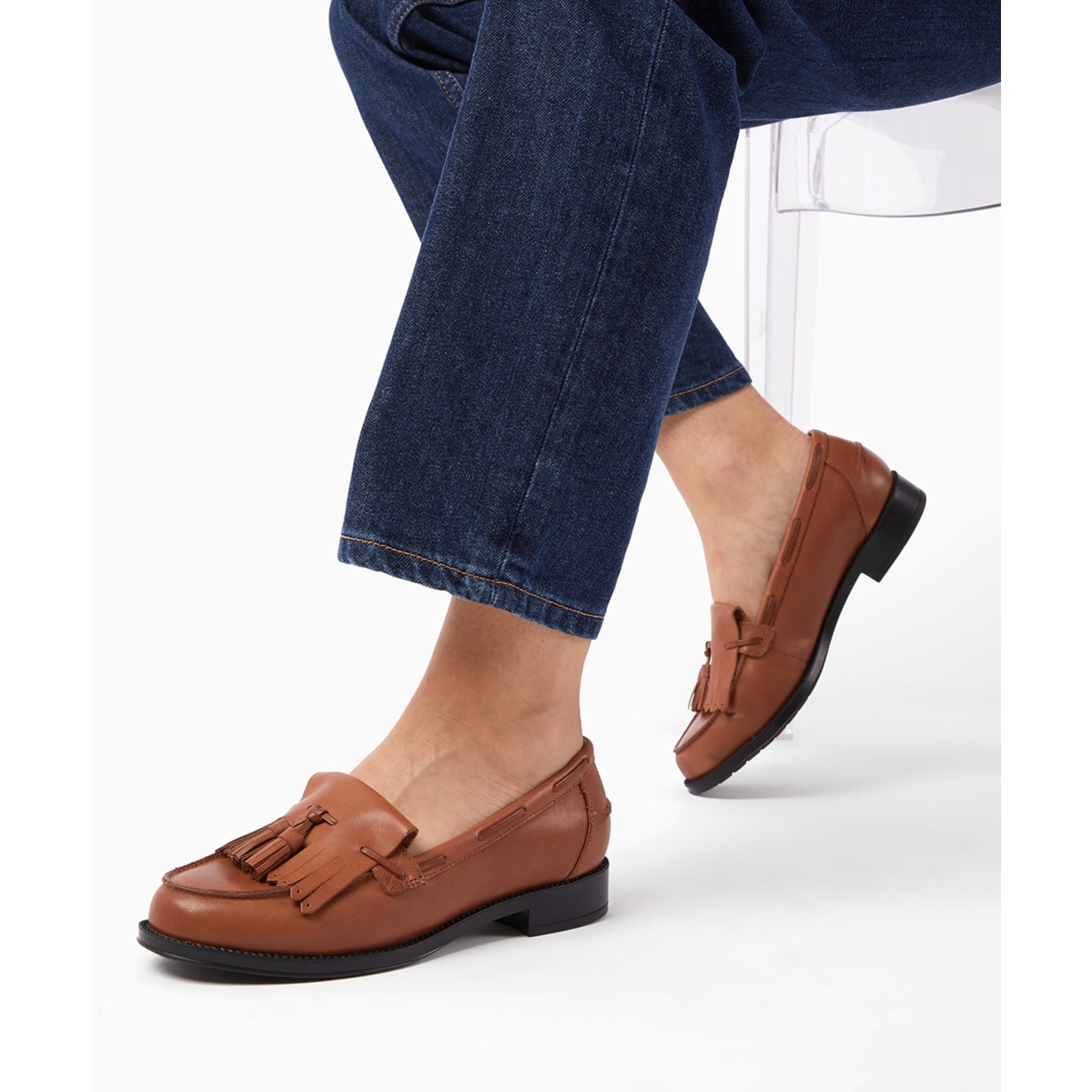 Loafers are having something of a renaissance lately, and the Goals are the perfect pair to kick-start your entry into this must-have profile. The slip-on style and comfortable low block heel make them easy to wear. Finished with tassels and an apron trim, they will form the foundation to many a weekday (and weekend) look.
