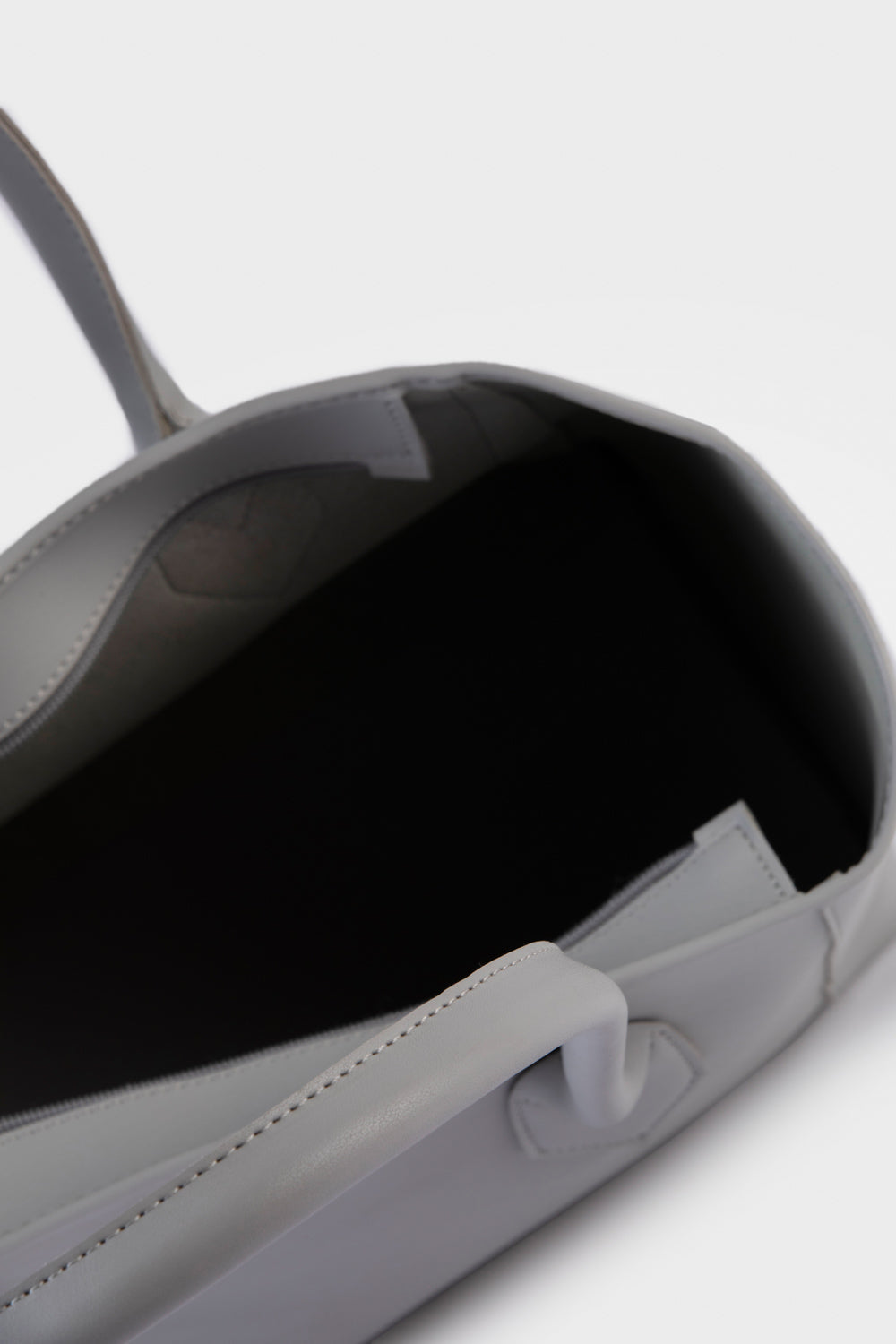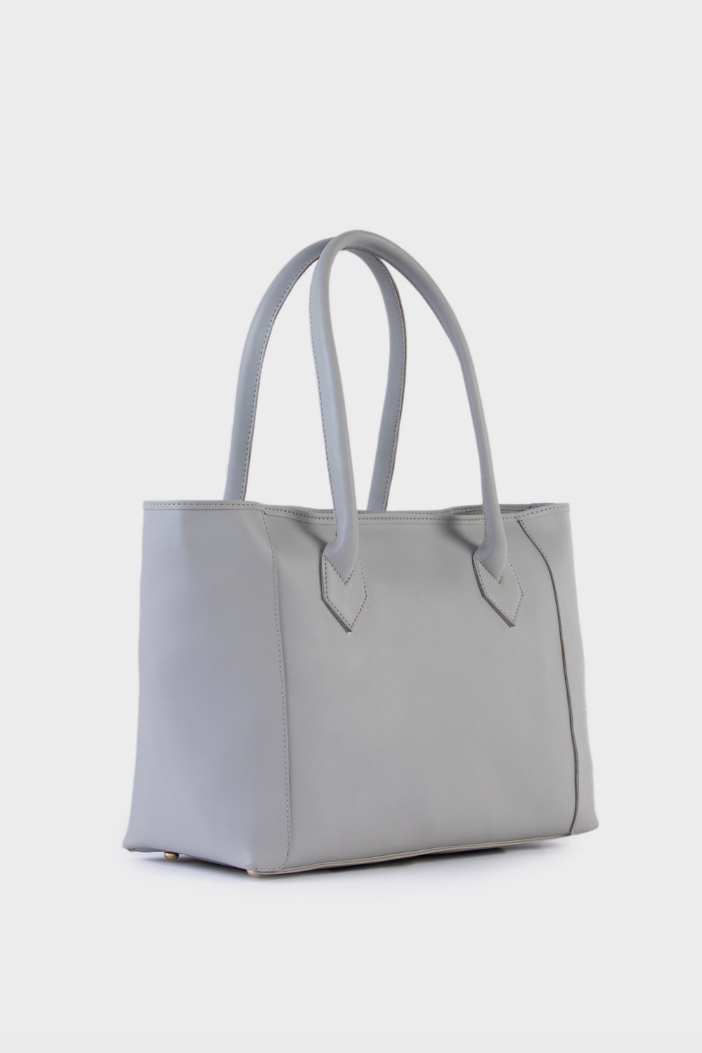 Level up your look with this spacious and stylish tote in PU material, imbued in a grey colour with short straps.
