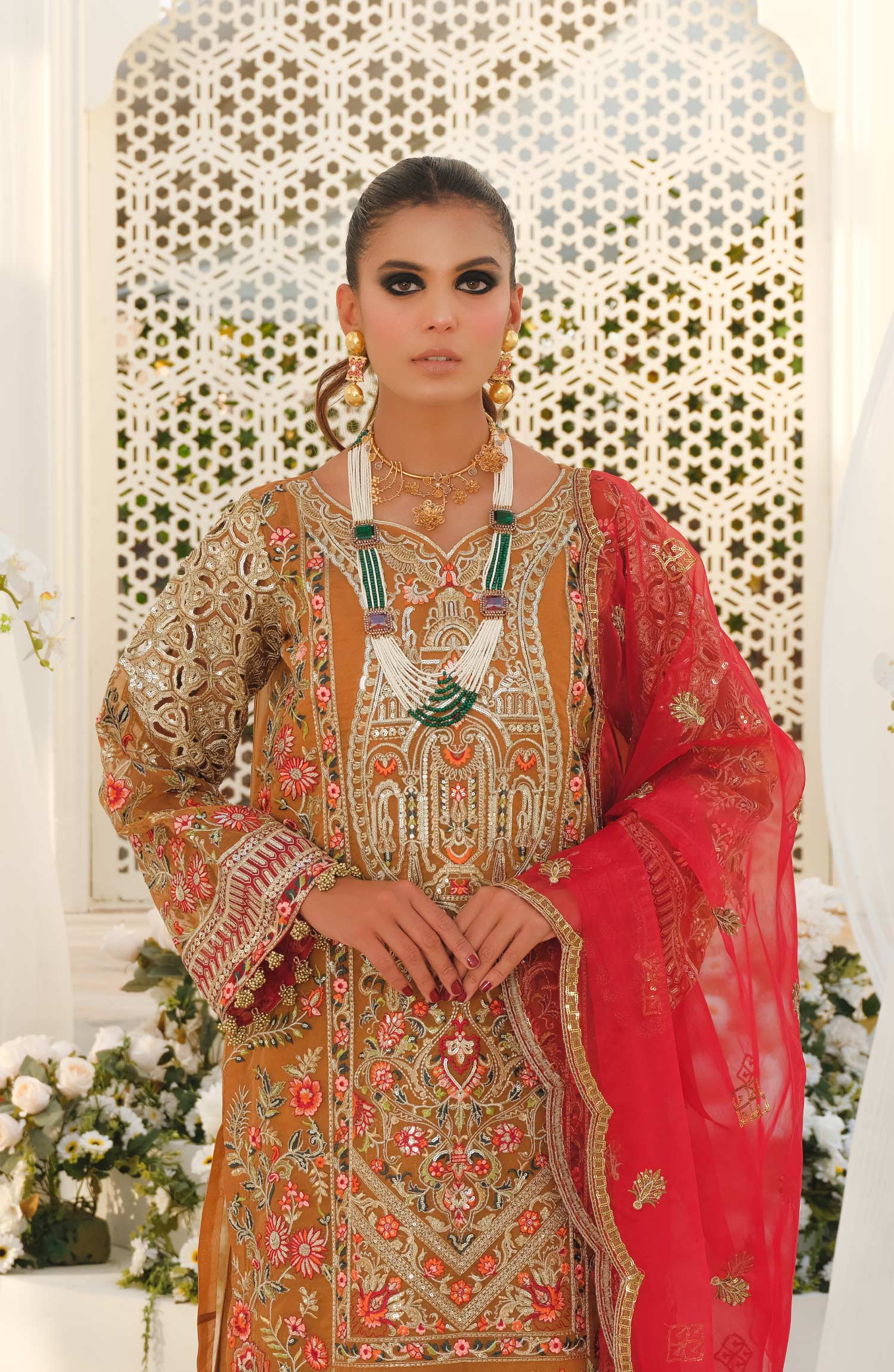 Embroidered Organza Front & Sleeves Organza Back Embroidered Organza Front Back & Sleeves Patti Patch Embroidered Mesori Front Back Patti Patch Embroidered Organza Dupatta Grip Trouser