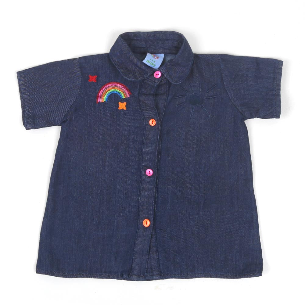 Infant Girls Top Denim Rainbow EMB - Mid Blue | Bachaa Party Baby Clothes Girls Tops & T-Shirts