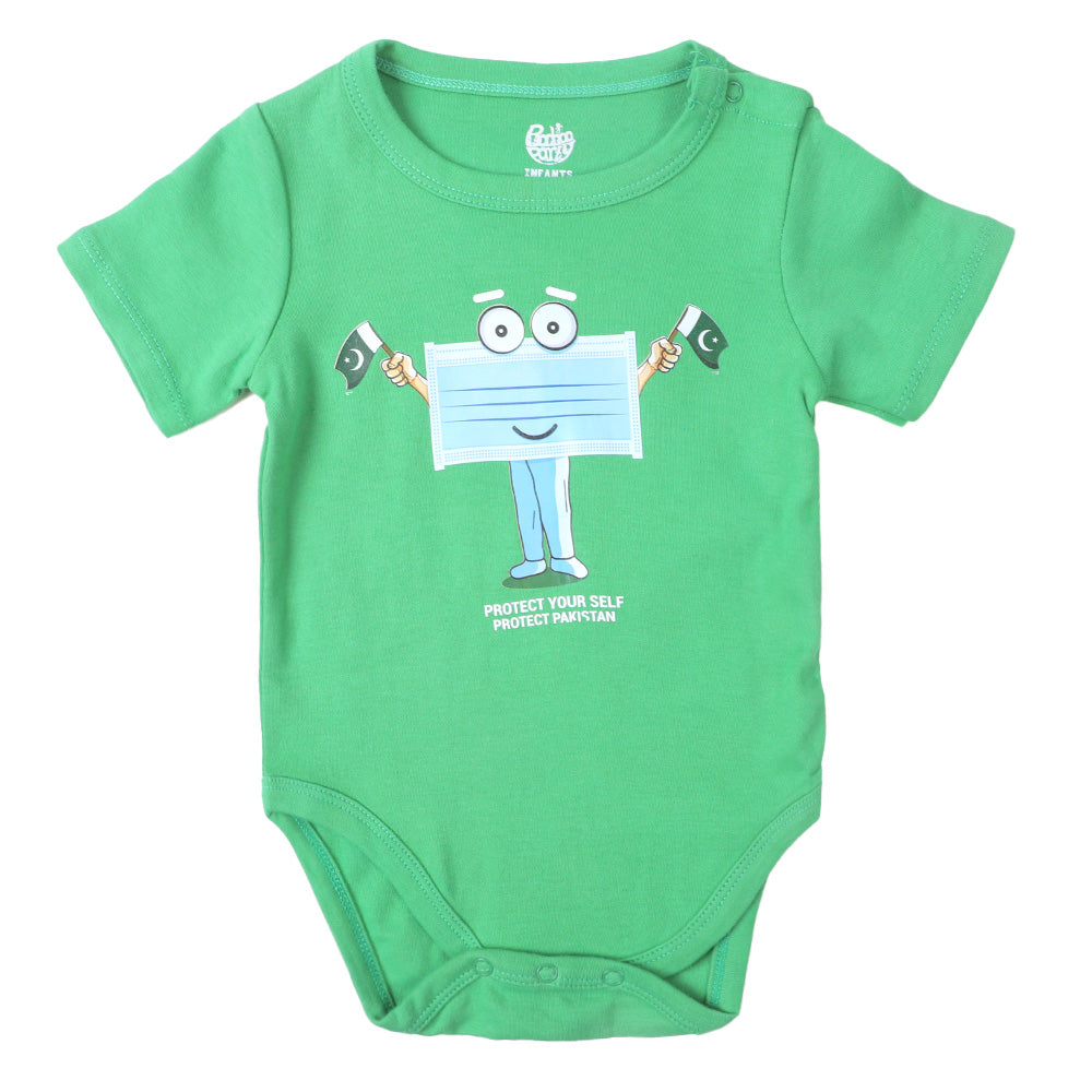 Bachaa Party brings you the best price for Infants Boys Basic Romper Protect Yourself - Fern Green with express shipping all over Pakistan.