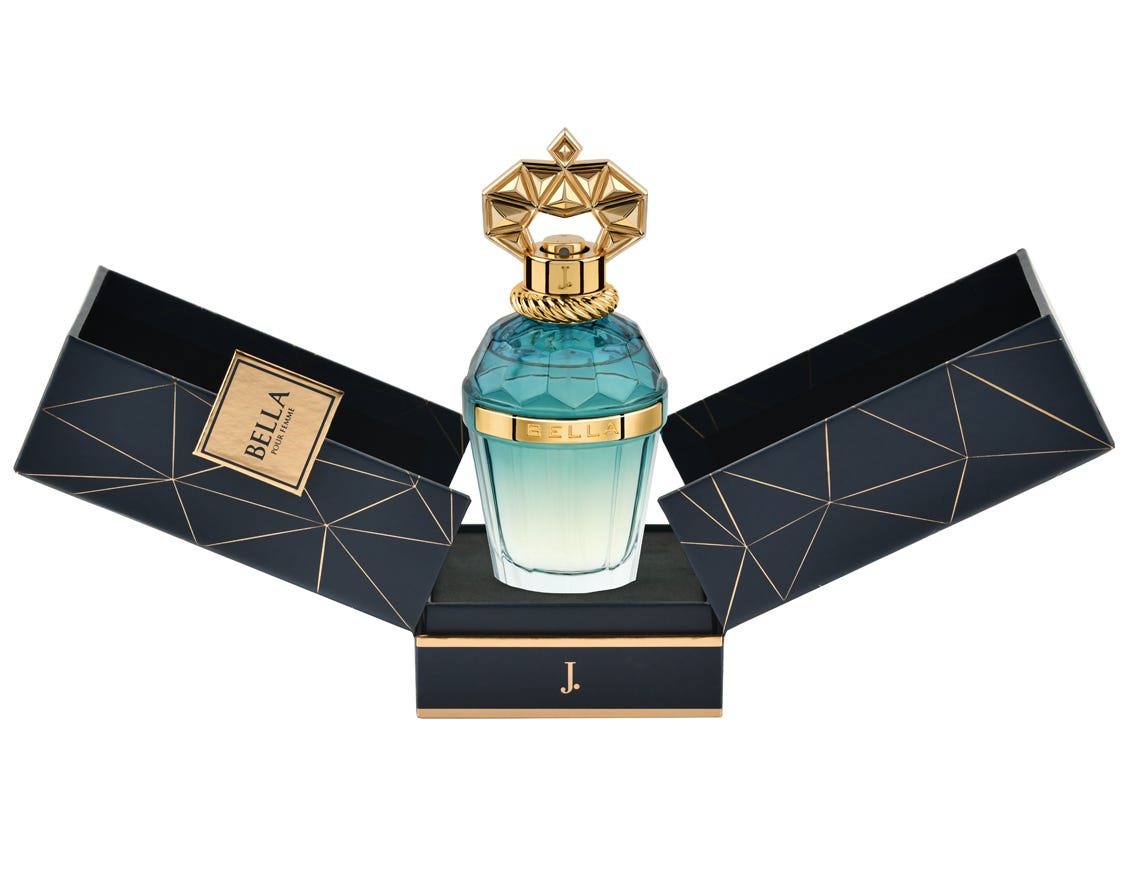 This fragrance is the true depiction of a beautiful, blossoming rose with delicious & elegant shades of blackberry. Alongside, the aroma of Voluptuous violet envelops it with a powdery aura. The heart is dominated by magnificent & robust Taif rose, surrounded by the charming flowers of Jasmine & mimosa. This sparkling bouquet is further supported by the warmth & strength of patchouli, sandalwood & guaiac wood at the base.