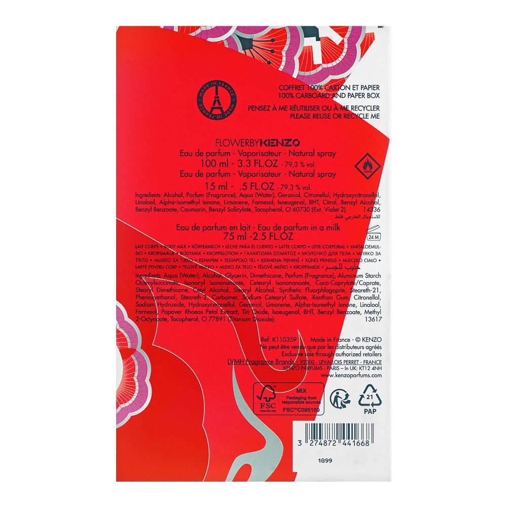 Kenzo Flower By Kenzo Set Eau De Parfum, 100ml + Eau De Parfum, 15ml + Body Milk, 75ml | France | Fragrance For Women