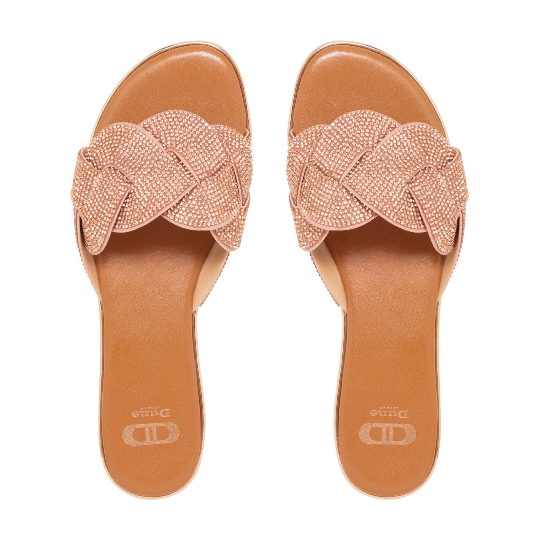 Create elegant summer looks with the Lynnie mules from Dune London. Defined by the shimmering diamante-adorned woven front strap. They're set on a comfy flat sole with a small heel.