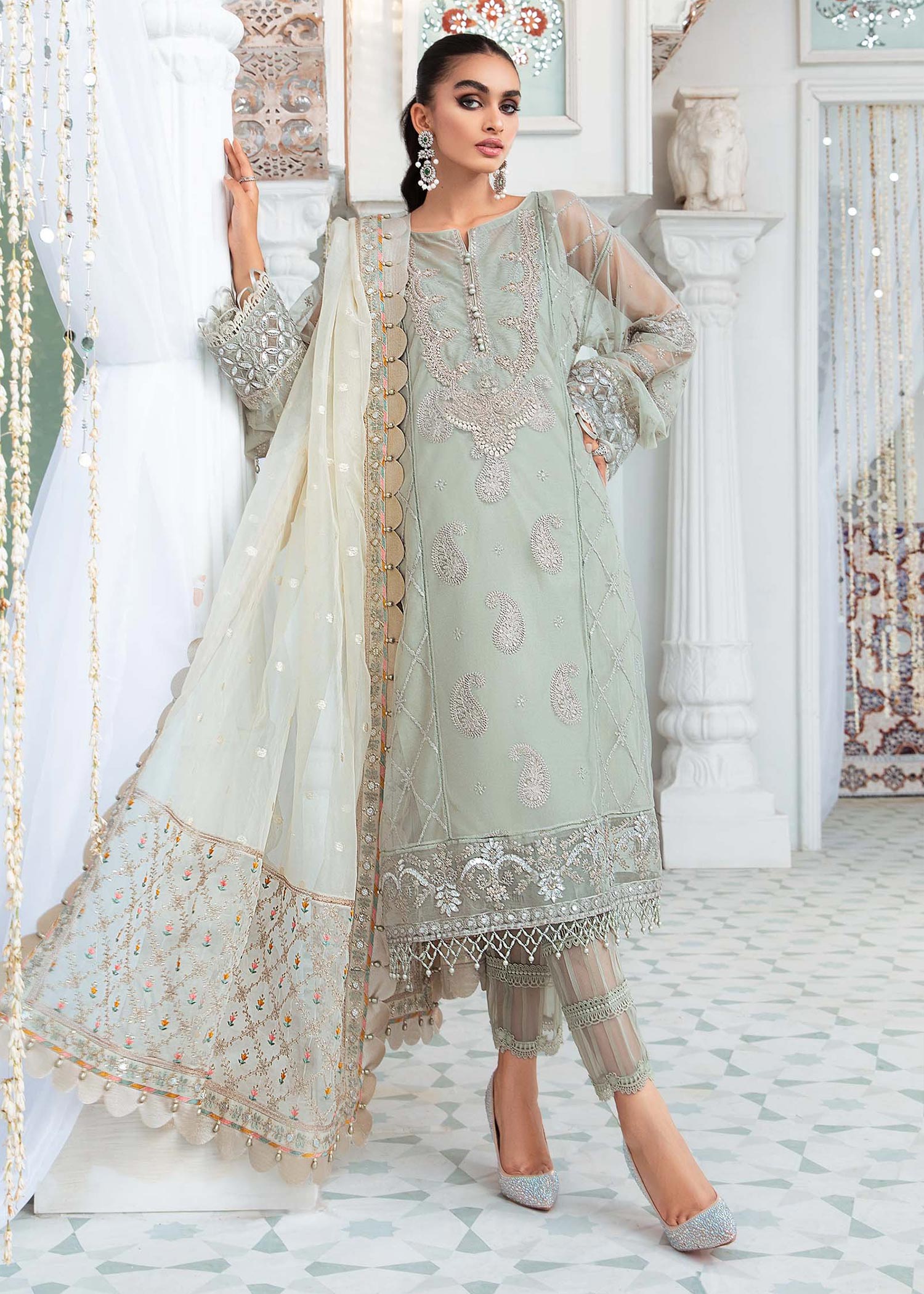 EL-22-03-Pista Green | Maria.B. Lawn Eid Collection 2022 | Unstitched Embroidered Lawn Suit