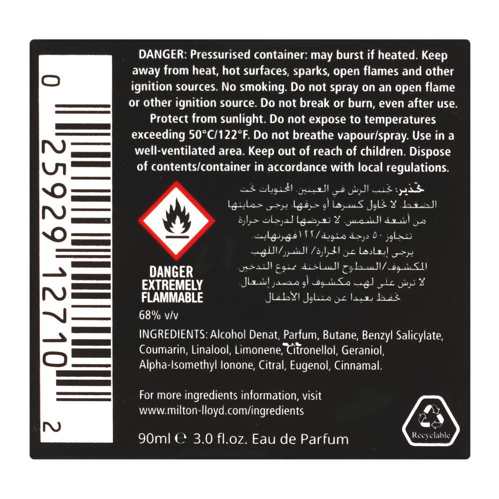 Experience the convenience of the Milton Lloyd Colour Me Black Homme Set EDT 90ml + Body Spray 150ml. Since 1975, Milton-Lloyd has been renowned for award-winning, luxury fragrances without the luxury price tag. The set offers a fresh, sensual, and refreshing experience with sparkling fruity top notes of bergamot and water fruits, a diffusive heart of aromatic geranium and lavender, and a sensually attracting base of vanilla, sandalwood, and patchouli. Enjoy the long-lasting performance of Colour Me Black, thanks to its high concentration of luxury oils. Embrace genuine Milton-Lloyd quality, crafted by world-leading perfumers with a commitment to exceptional perfumery over packaging and advertising, ensuring affordable luxury for millions of fragrance enthusiasts.