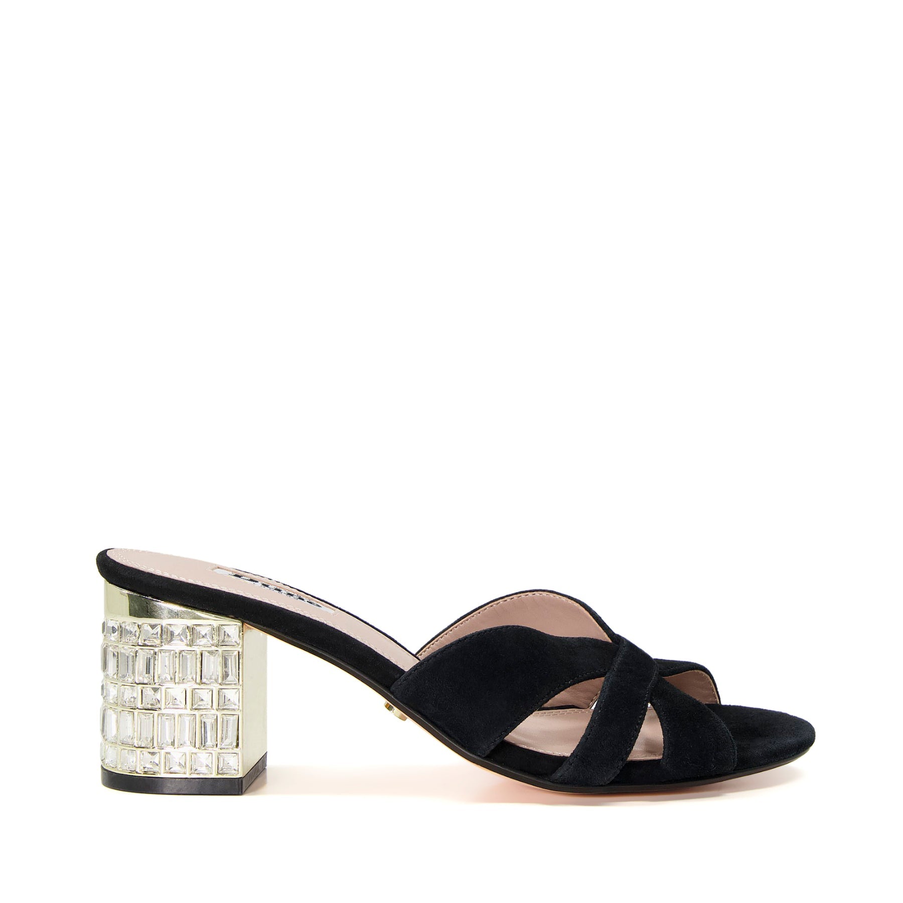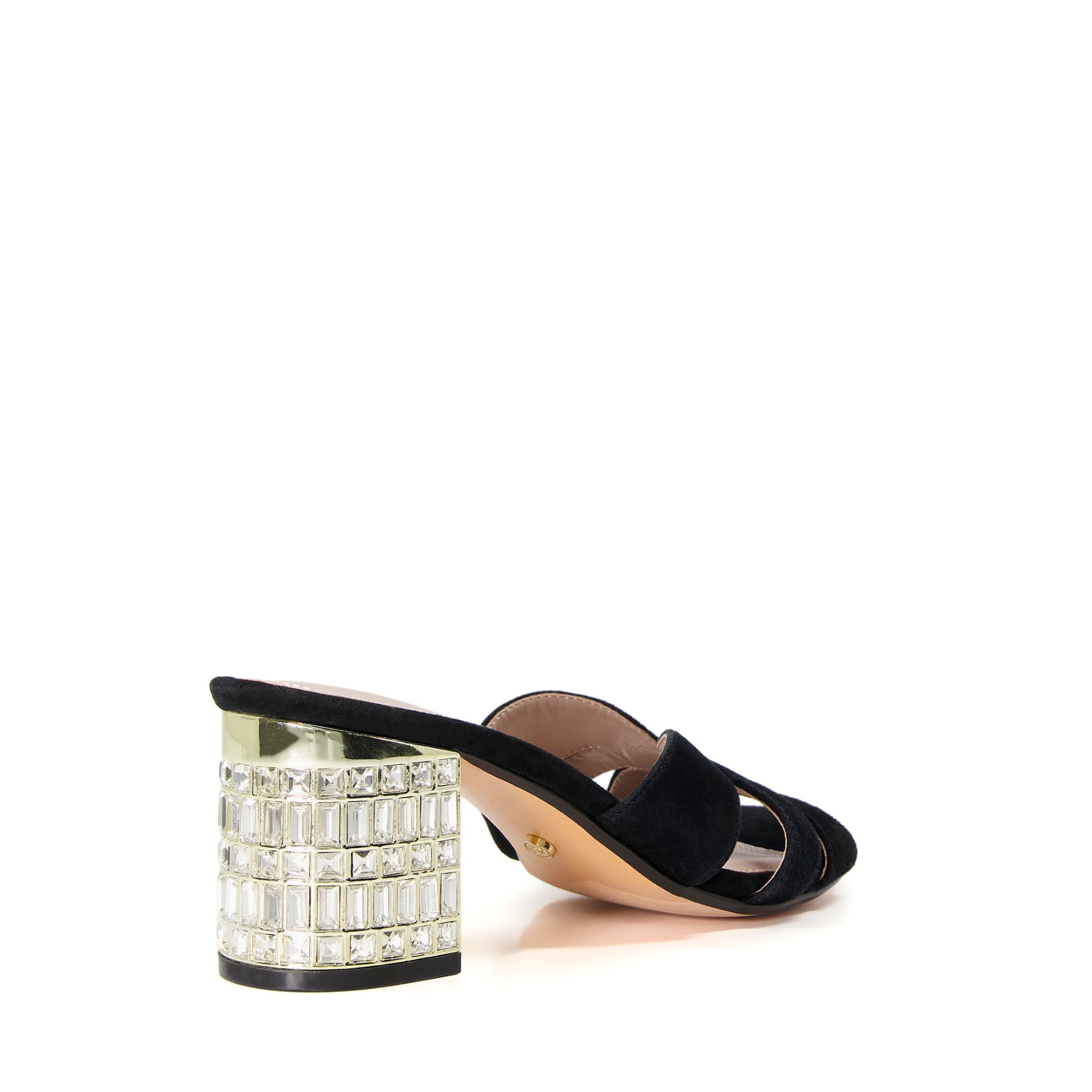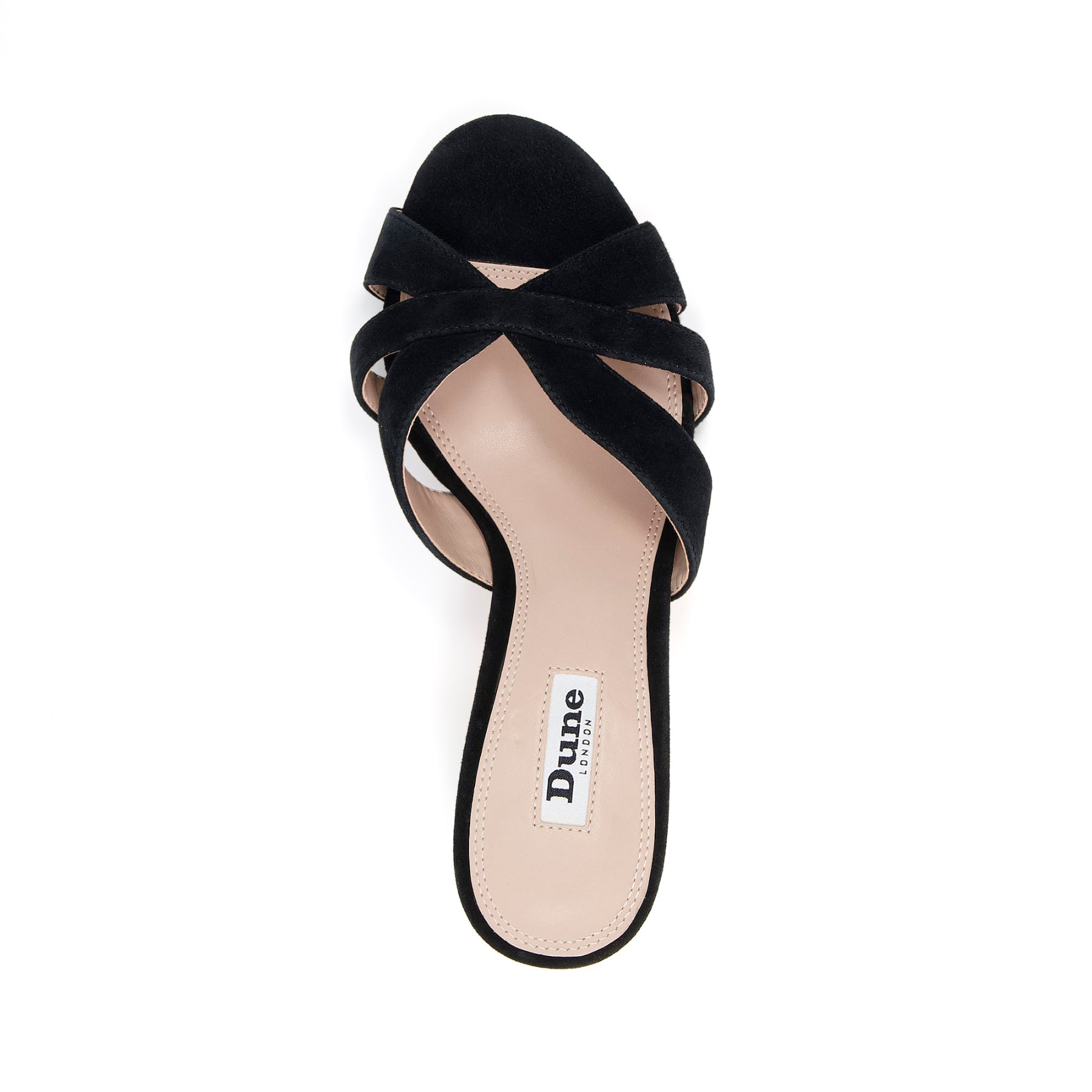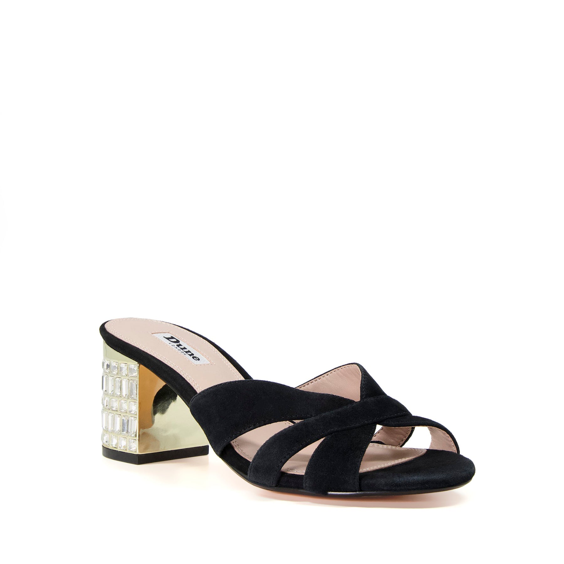 Finish off party outfits with the stylish Miren mules from Dune London. Resting on a jewel-encrusted mid block heel and shaped with a Sandal Toe. This easy slip-on pair is finished with an elegant caged vamp.