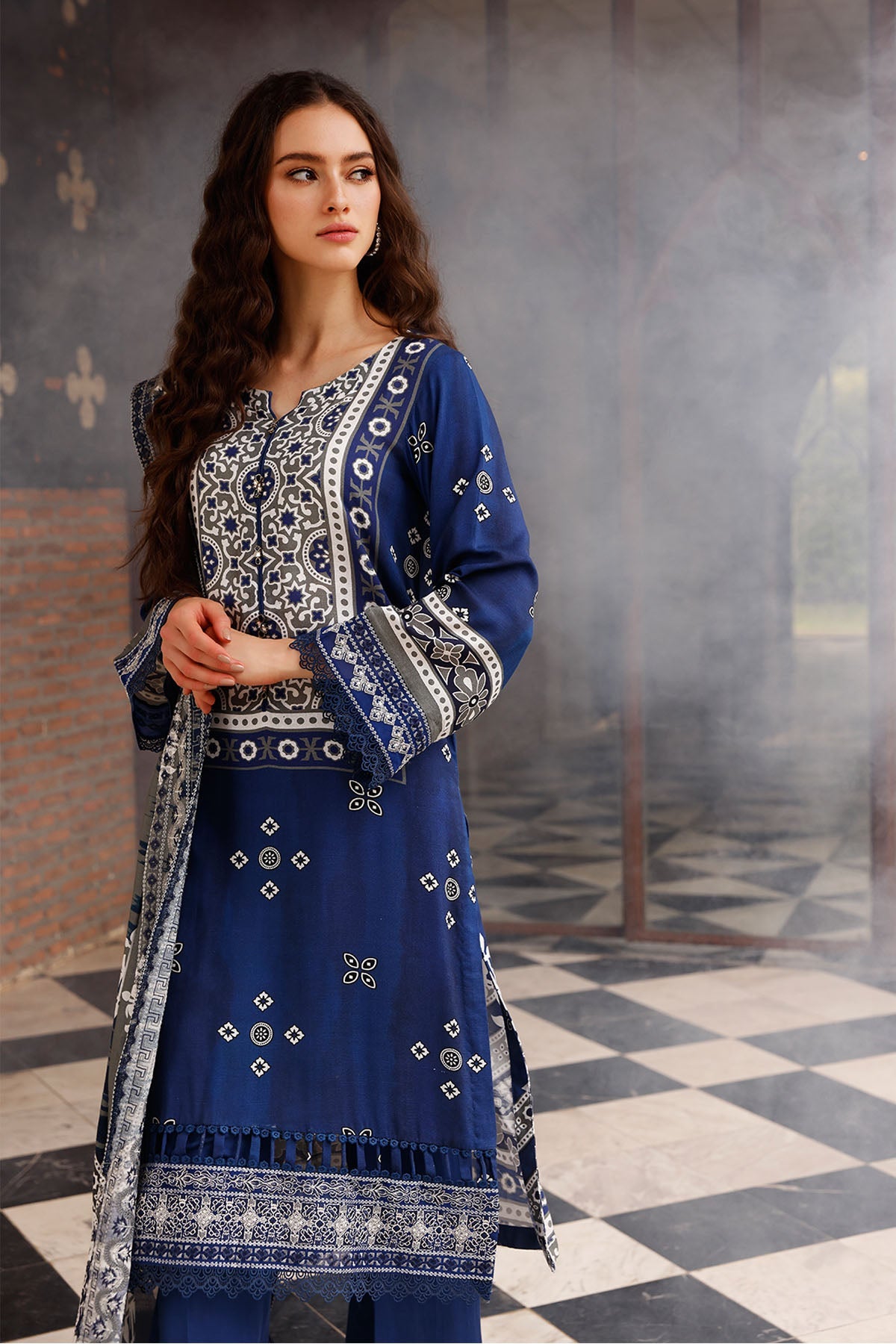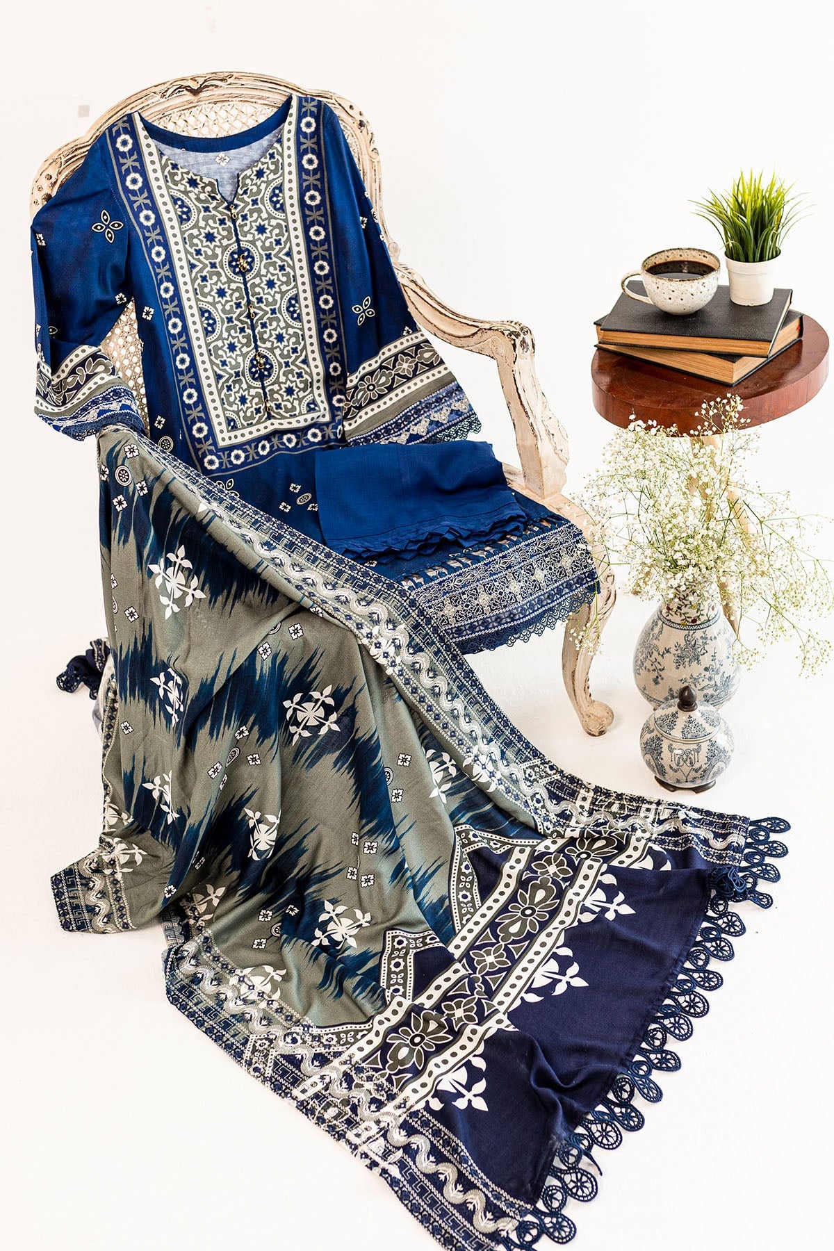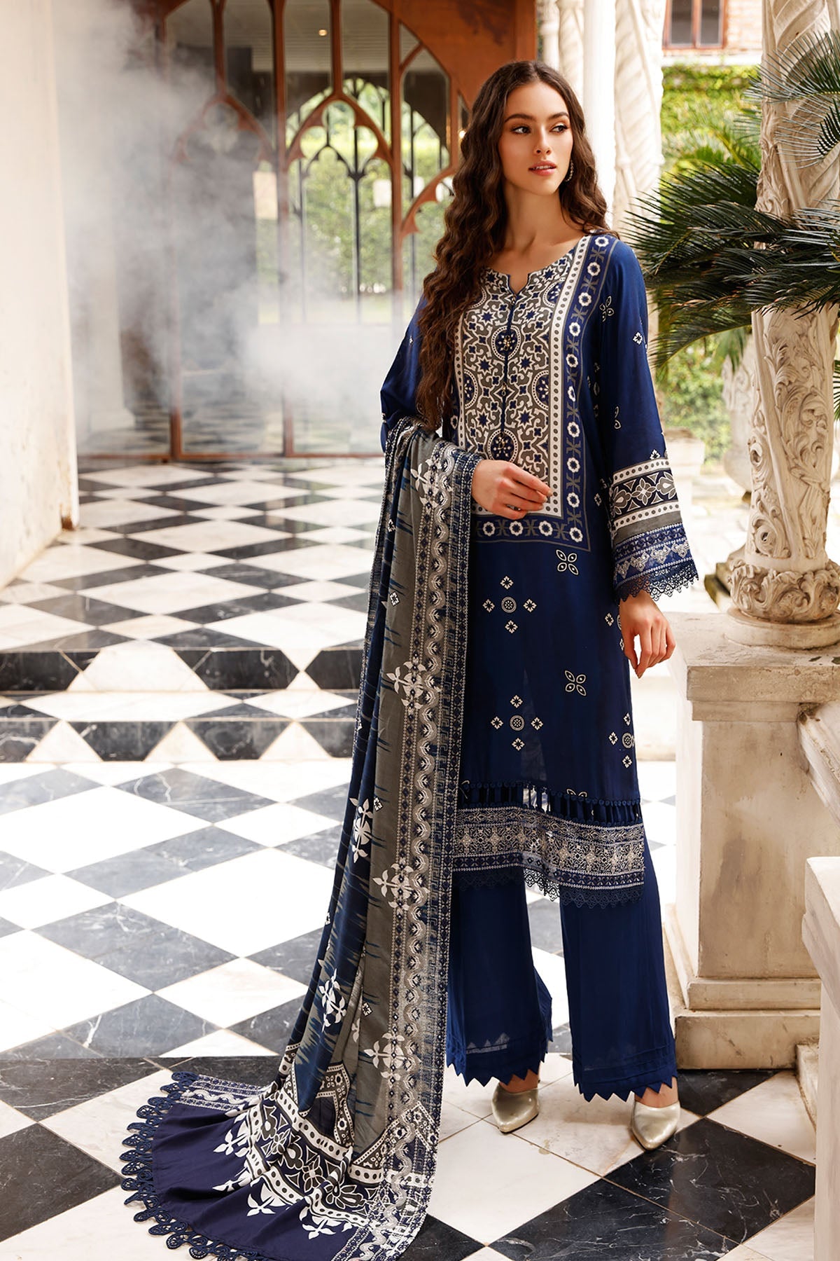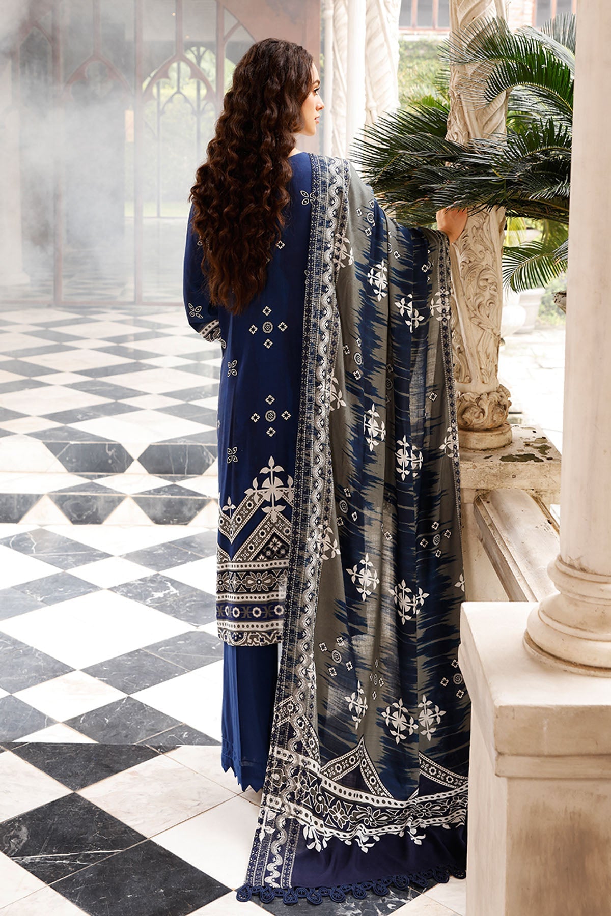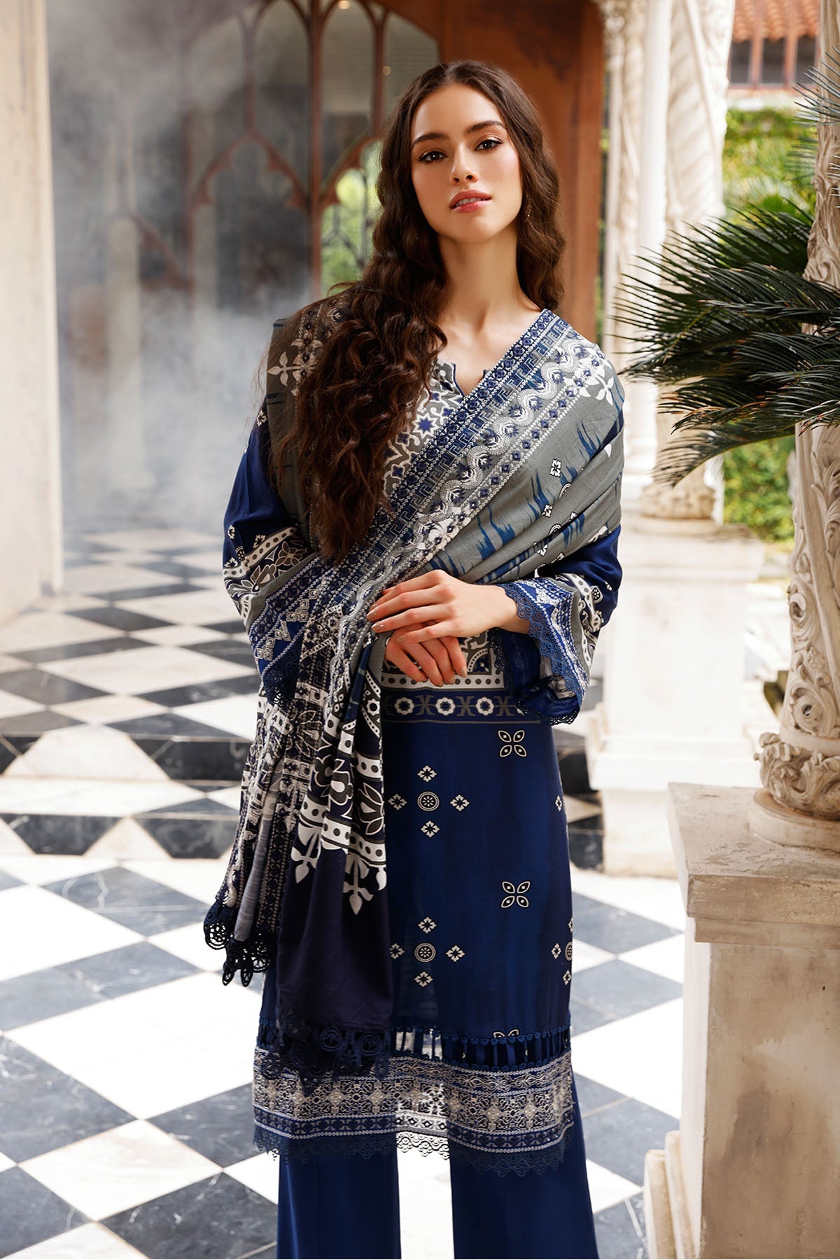 - Embroidered & printed linen shawl