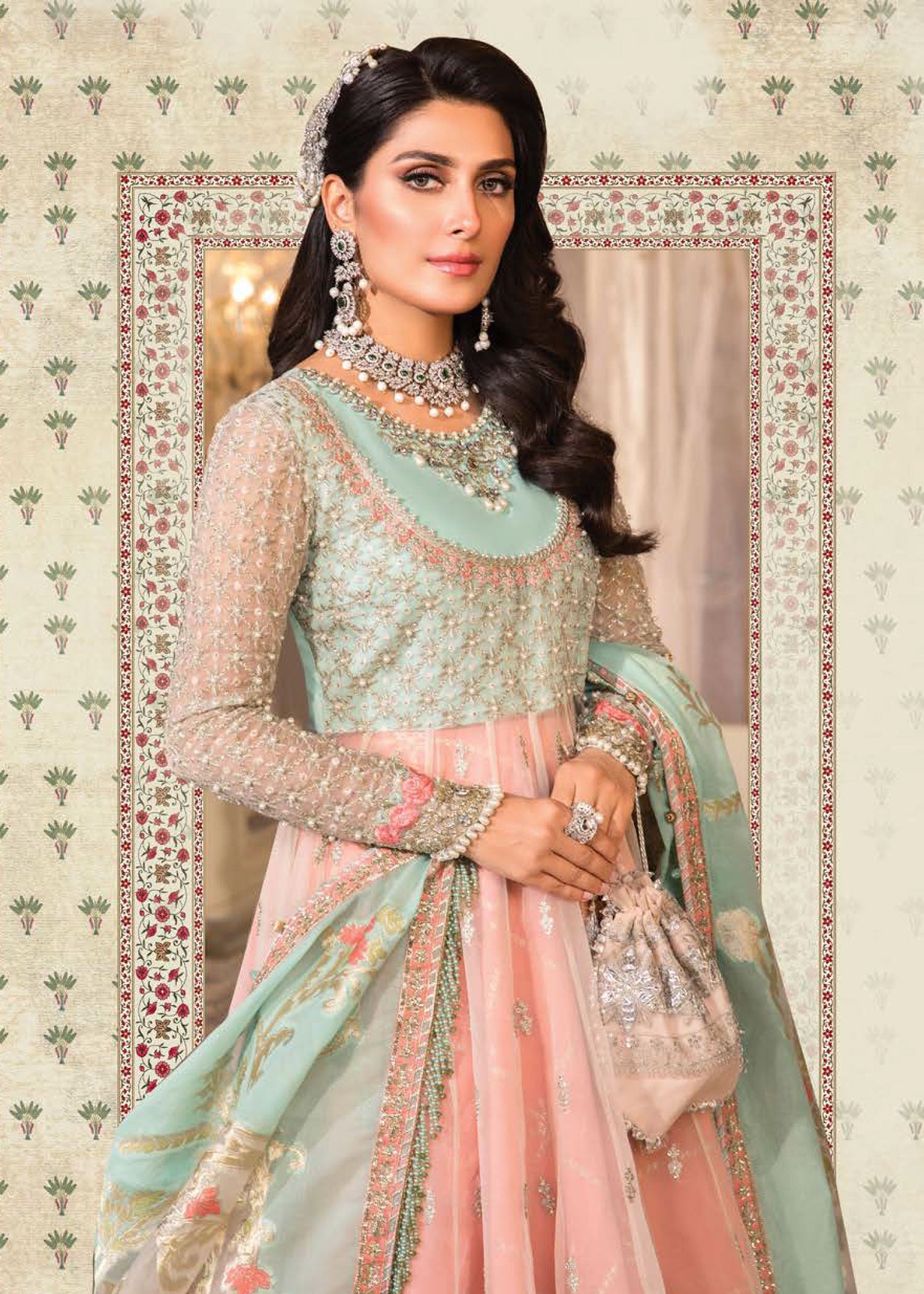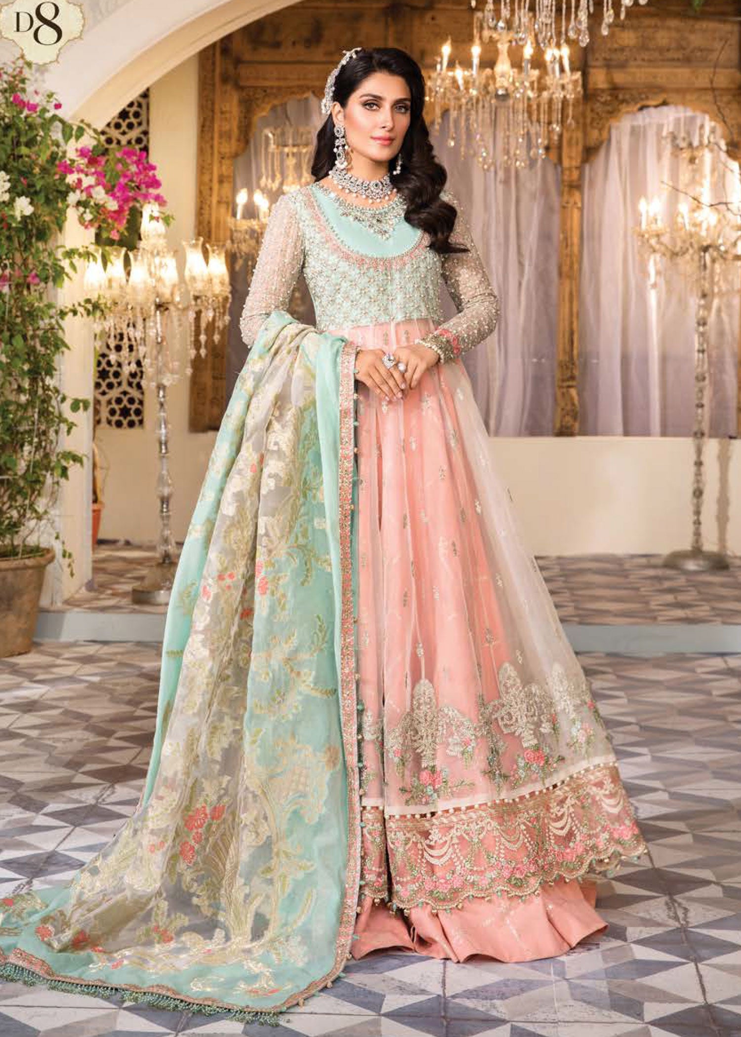 Pearl White, Peach and Aqua (BD-2408) | Maria B Mbroidered Heritage Edition 2022 | Unstitched Embroidered Organza Suits