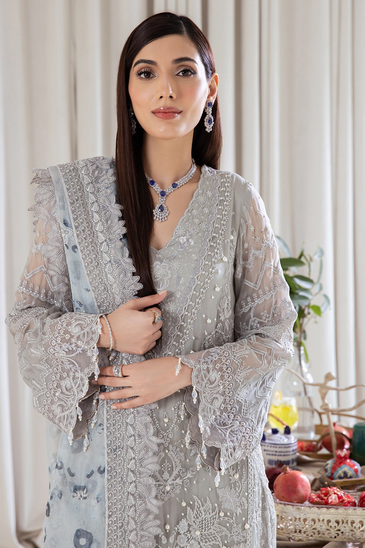 - EMBROIDERED & EMBELLISHED CHIFFON SHIRT