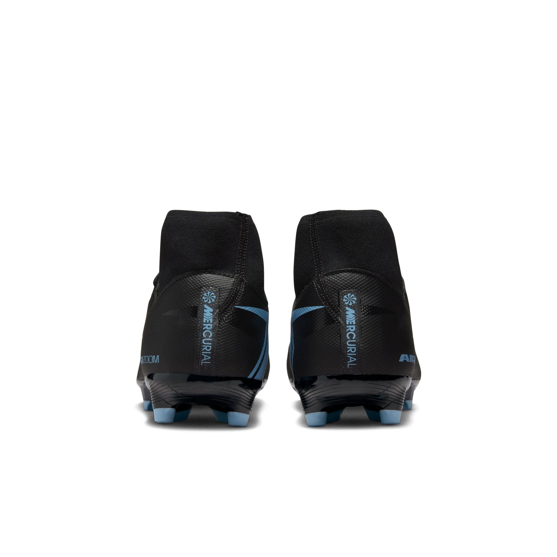 Nike Mercurial Superfly 10 Academy Multi-Ground High-Top Soccer Cleats Looking to take your speed to the next level? We made these Academy cleats with an improved heel Air Zoom unit. It gives you the propulsive feel needed to break through the back line. The result is the most responsive Mercurial we've ever made, so you can dictate pace and tempo all match long. Amplified Touch The upper is made of NikeSkin with embedded chevrons, which helps provide ball control and truly gives you a feeling of barefoot soccer. Fast Traction The wave-like traction pattern is a series of cascading studs, so it engages more surface area of the Air Zoom unit while also providing the appropriate amount of grip. The biggest stud is the same height as our traditional middle studs, so traction is not compromised. We paired the wave-like traction with evolved chevron and blade studs to help you stop when making quick cuts. Snug Fit We’ve upgraded the stretch mesh from the previous generation to an adaptable knit that offers flexibility, provides support and brings you closer to the ball. A Dynamic Fit collar wraps your ankle in soft, stretchy fabric for a secure feel. More Details